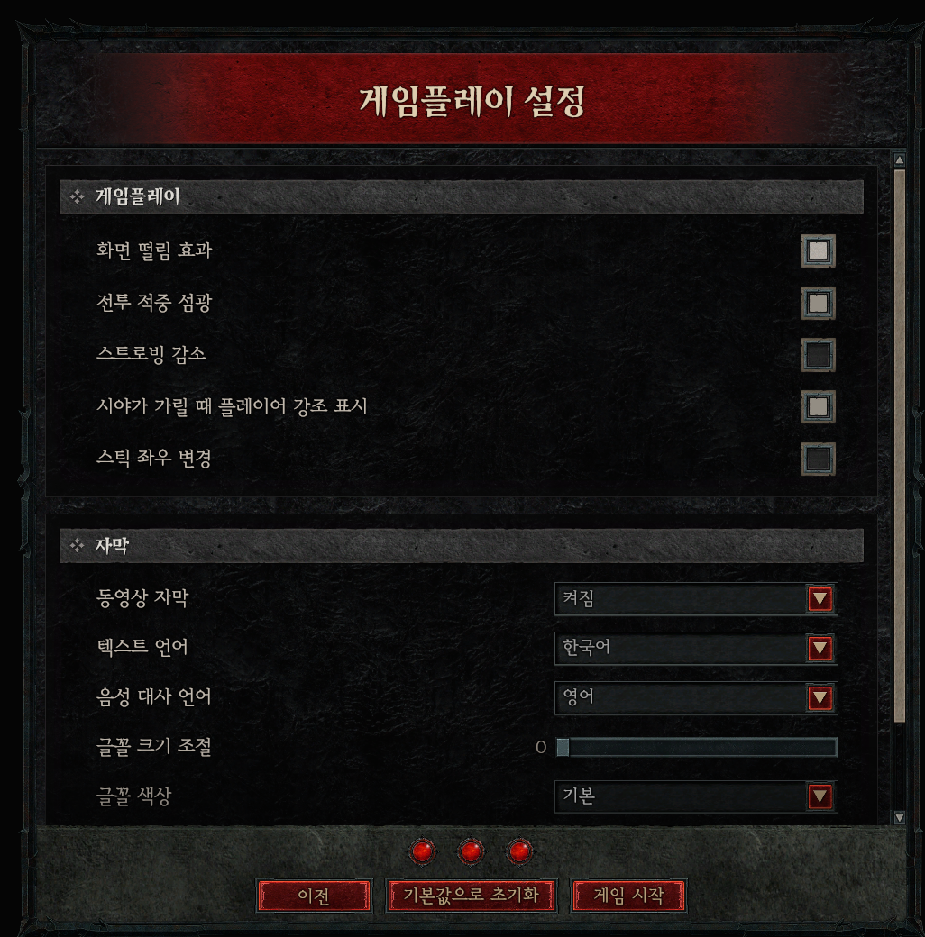 게임 실행 하자마자 게임 설정 값을 설정 할 수 있다.