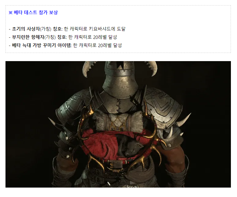 보통 이런 보상이 없는데 베타 테스트를 참여 안할것 같아서 그런가? 여튼 테스트 참가 보상이 존제 한다.