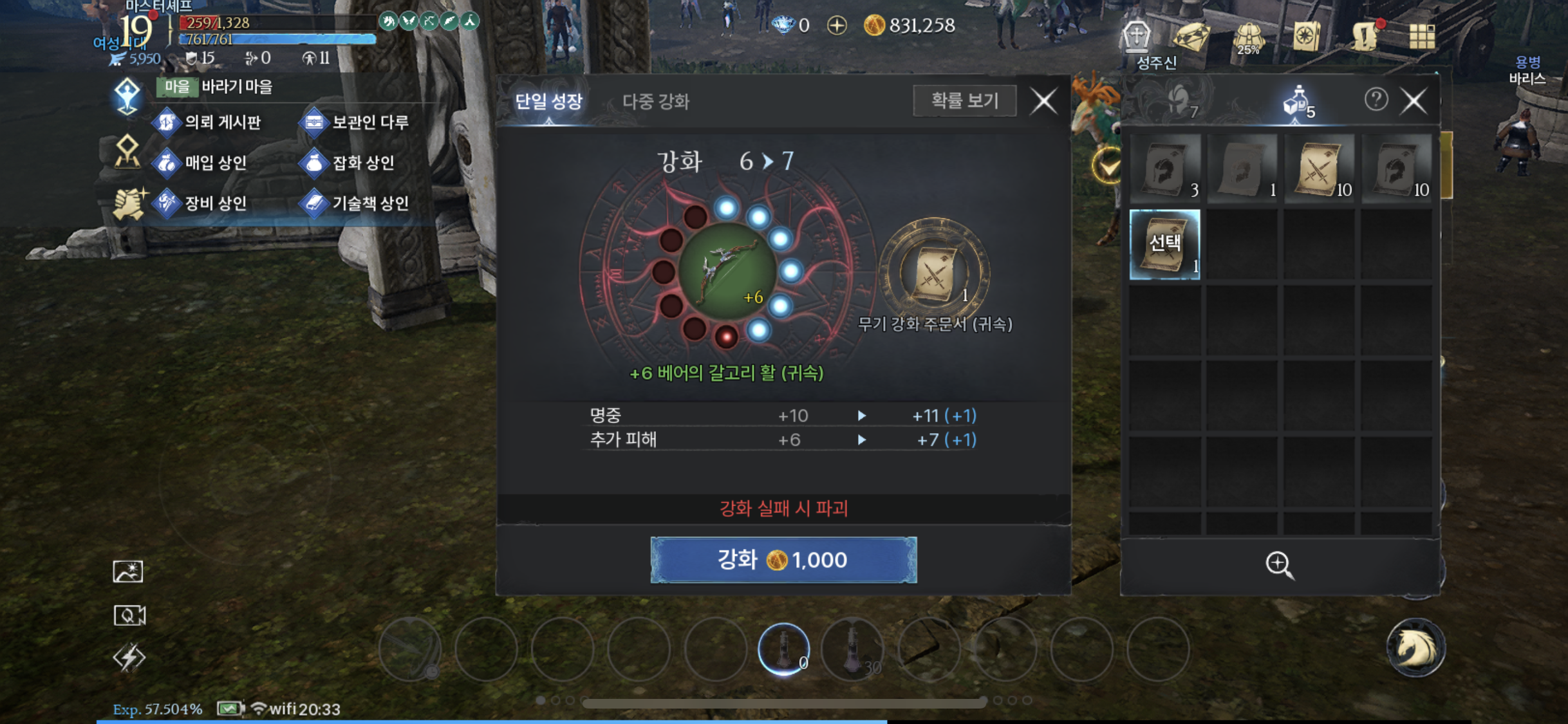 강화는 6까지는 100프로 7부터 실패시 파괴이다.