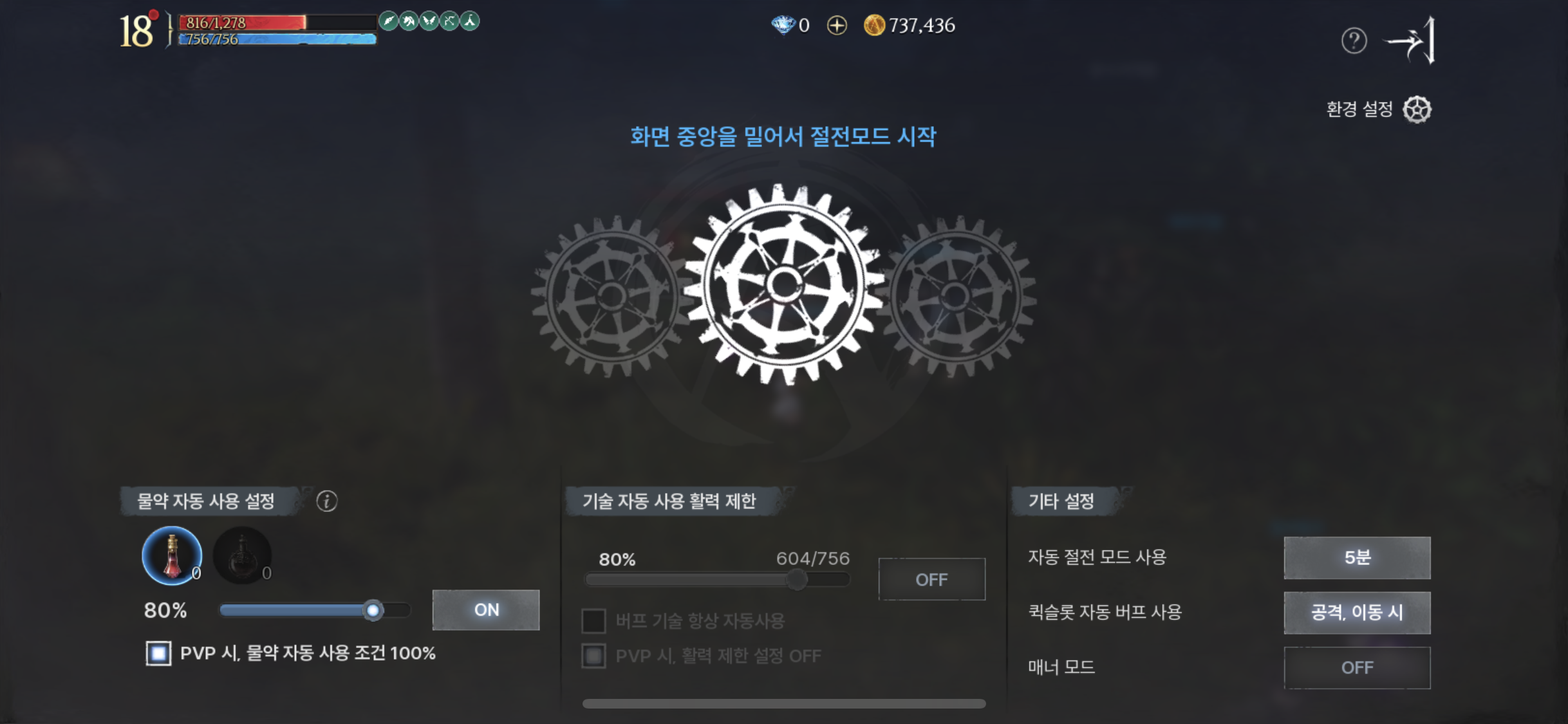 인터페이스 구성은 이런류의 게임들이 다 비슷하다.