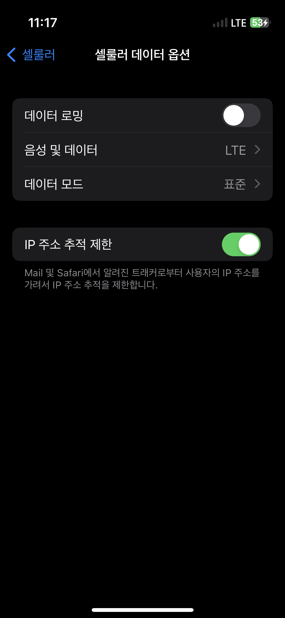 셀룰러는 정상적으로 켜저 있고 LTE 도 정상적으로 적용 되어 있는데 안테나가 안뜬다.
