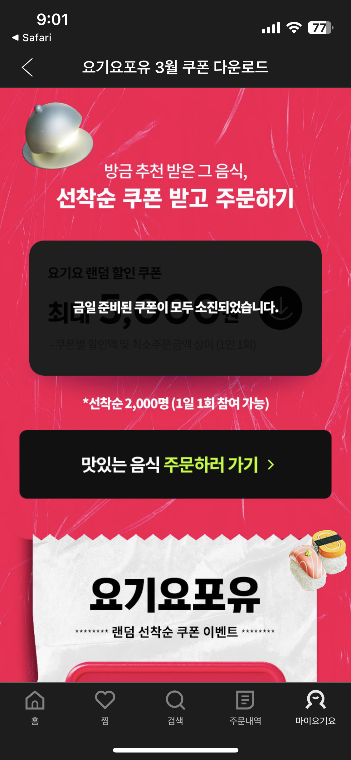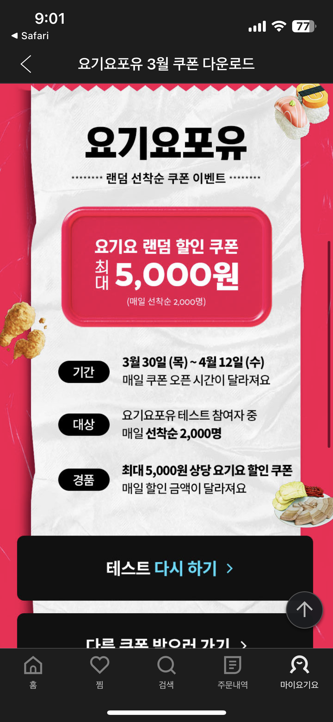 매일 선착순으로 쿠폰을 뿌린다.(받기 힘들다 ㅠ.ㅠ 오픈시간이 매일 다르다고한다.)