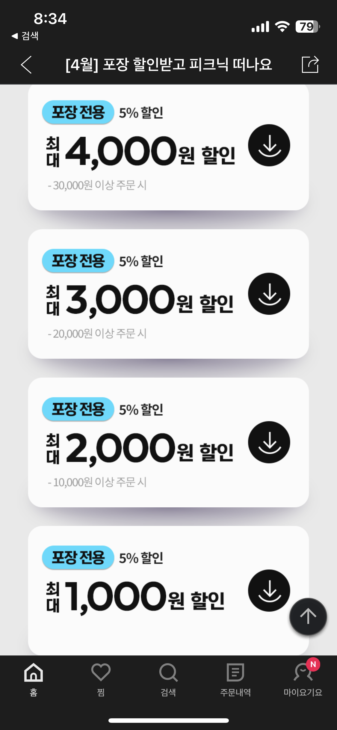 새로 생긴 쿠폰이다 포장시 적용 되는 쿠폰들이다.