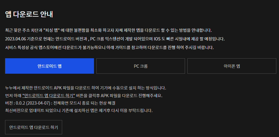 표면적으로 지속적으로 피싱앱(?) 에 대한 불편함을 최소화 하기를 위해서 만들었다고 하지만.... 글쎄...