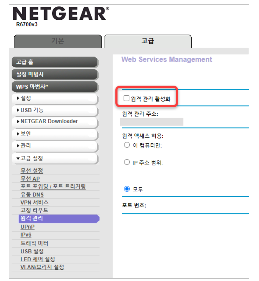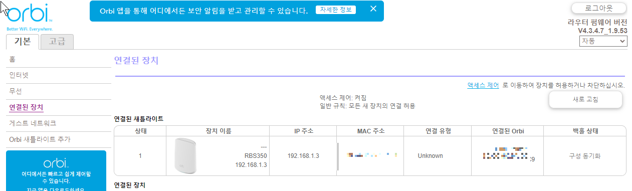 예전에는 원격 관리 접속이 있었떤것 같다. orbi 만 지원이 안되는건지 보안때문에 없앤건지 지원이 안된다.