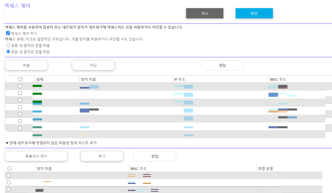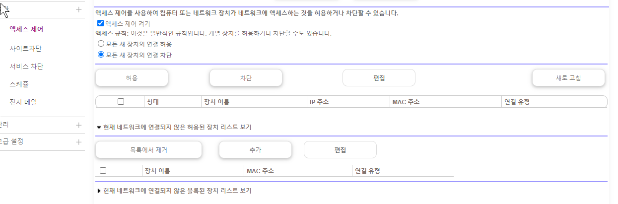 ㅎㅎㅎ 액세스 제어에 MAC 등록했는데 리스트가 안뜬다..