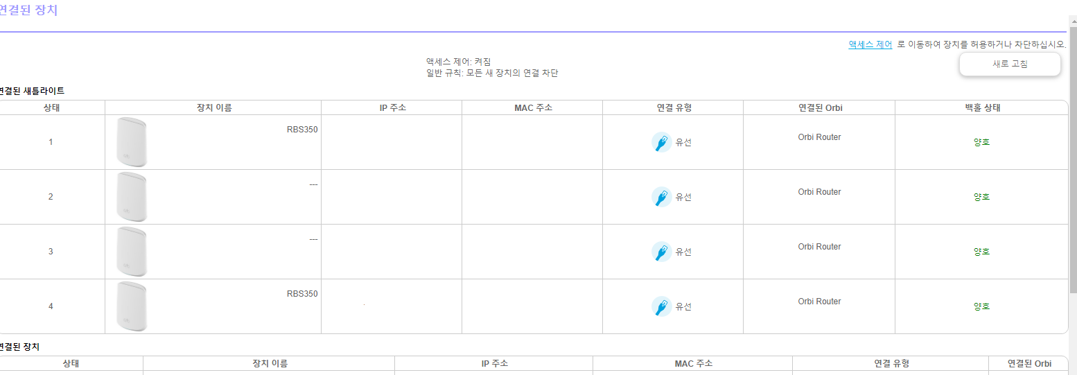 마지막으로 새틀라이트가 3개만 인식을 해서 넷기어 고객센터에 전화를 해서 물어보니 이제품은 새틀라이트 지원이 3개만 된다고 한다. 더 많은 새틀라이트를 연결하려면 RBS7xx 으로 가야 한다고 한다. 포트가 3개 있어서 그럴수 있겠지만 스위치 허브 연결하면 될텐데 이상하다 라고 생각을 하고 이것저것 하다가