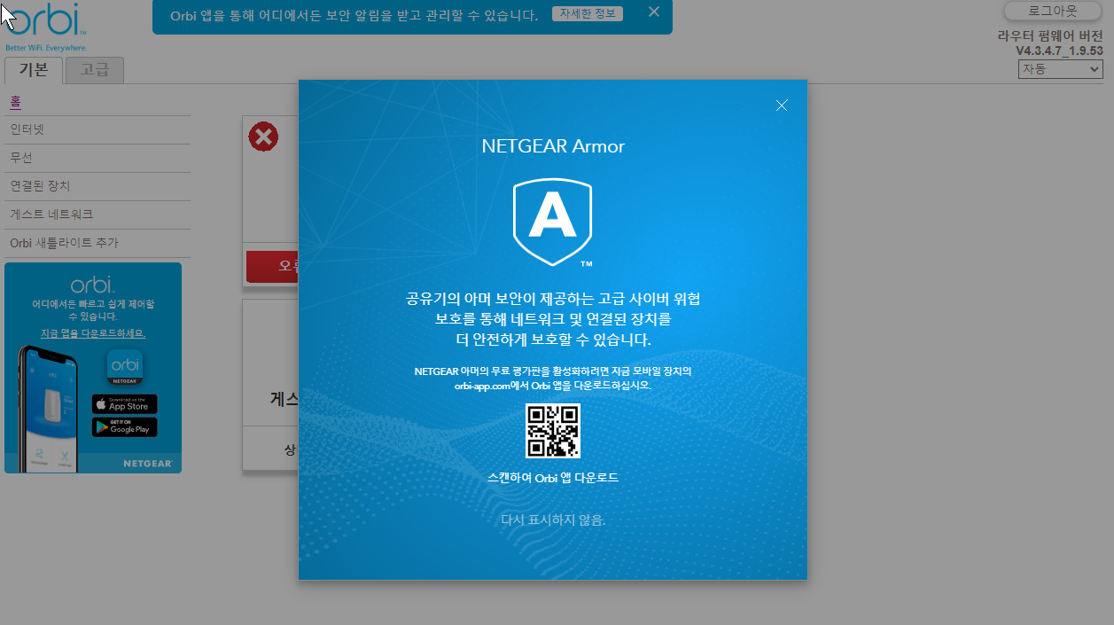 관리자 페이지 들어가면 netgear Armor 광고가 뜬다 월 과금용... 굳이 이걸 돈주고 해야 하나.. 싶다.