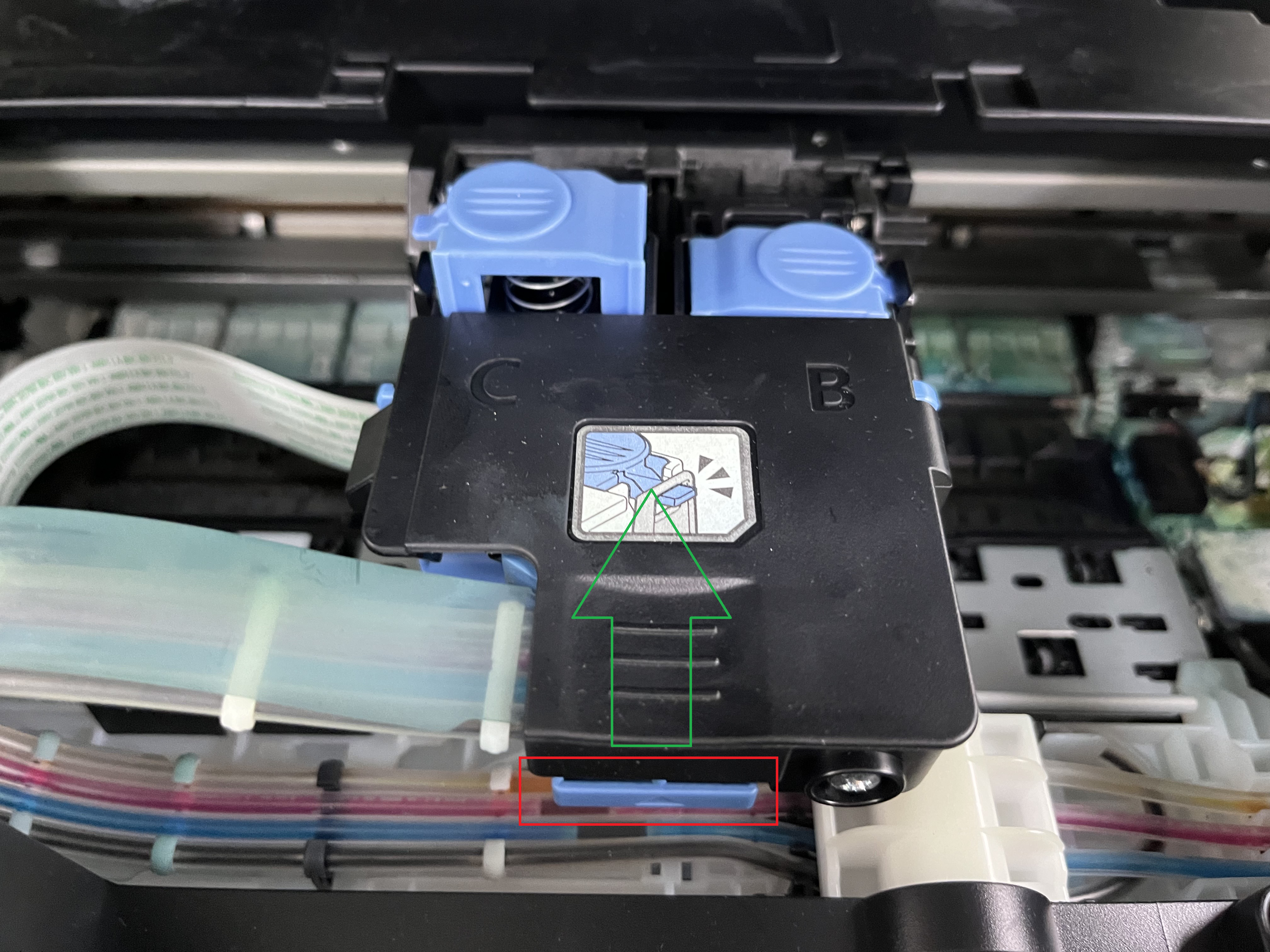 커버를 열고 헤드 부분을 손으로 옆으로 이동 시키자.