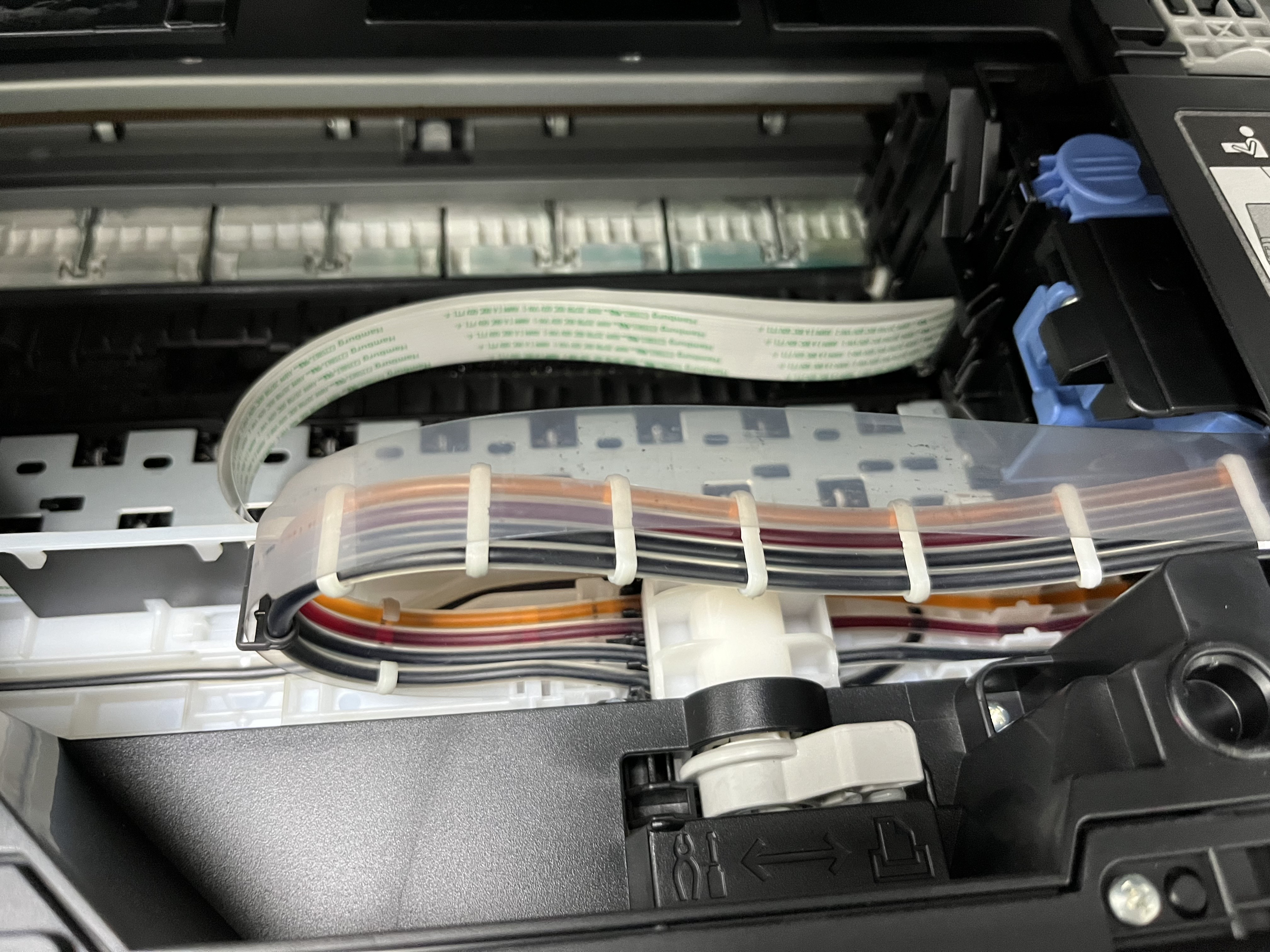 케이블 상으로 봐도 잉크가 모두 튜브에 다 들어가져 있다. 그런대로 검정색이 안나온다.
