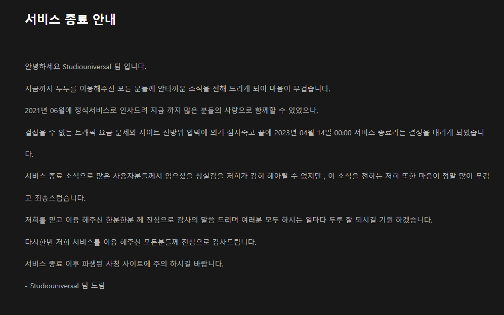 ㅎㅎ 이번에도 누누서비스 종료를 기사로 먼저 접했다.