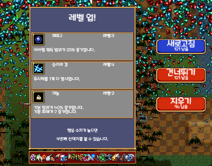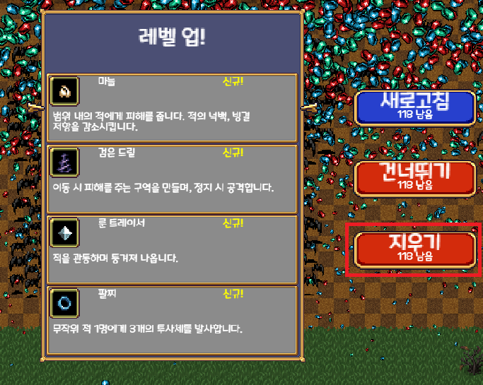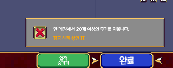 한게임에 20개 이상의 무기를 지웁니다. 간단하다.