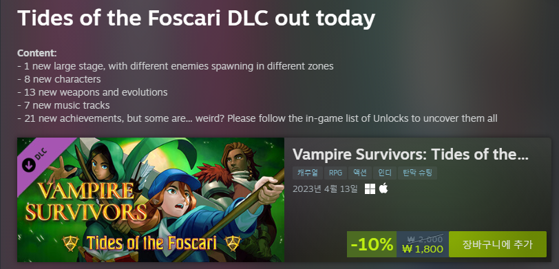 | 뱀파이어 서바이버즈(Vampire Survivors) 뱀파이어 서바이벌 1.3 패치로 변경된점 (1) | 2023.02.17 |