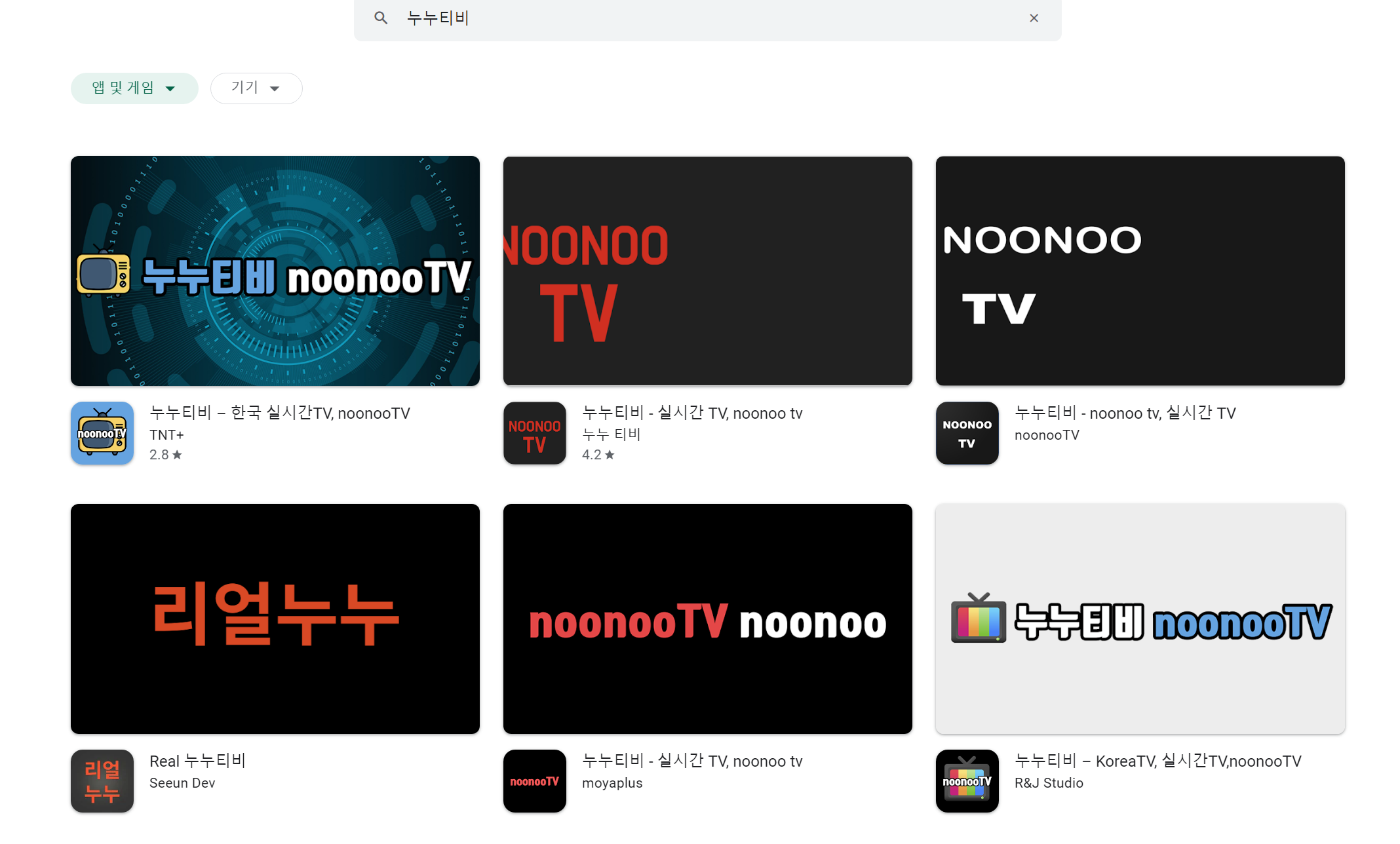 플레이스토어에 등록되어 있는 누누티브 모두다 누누티브에서 만들어서 배포한게 아닌 사기 유사 사이트들이다.