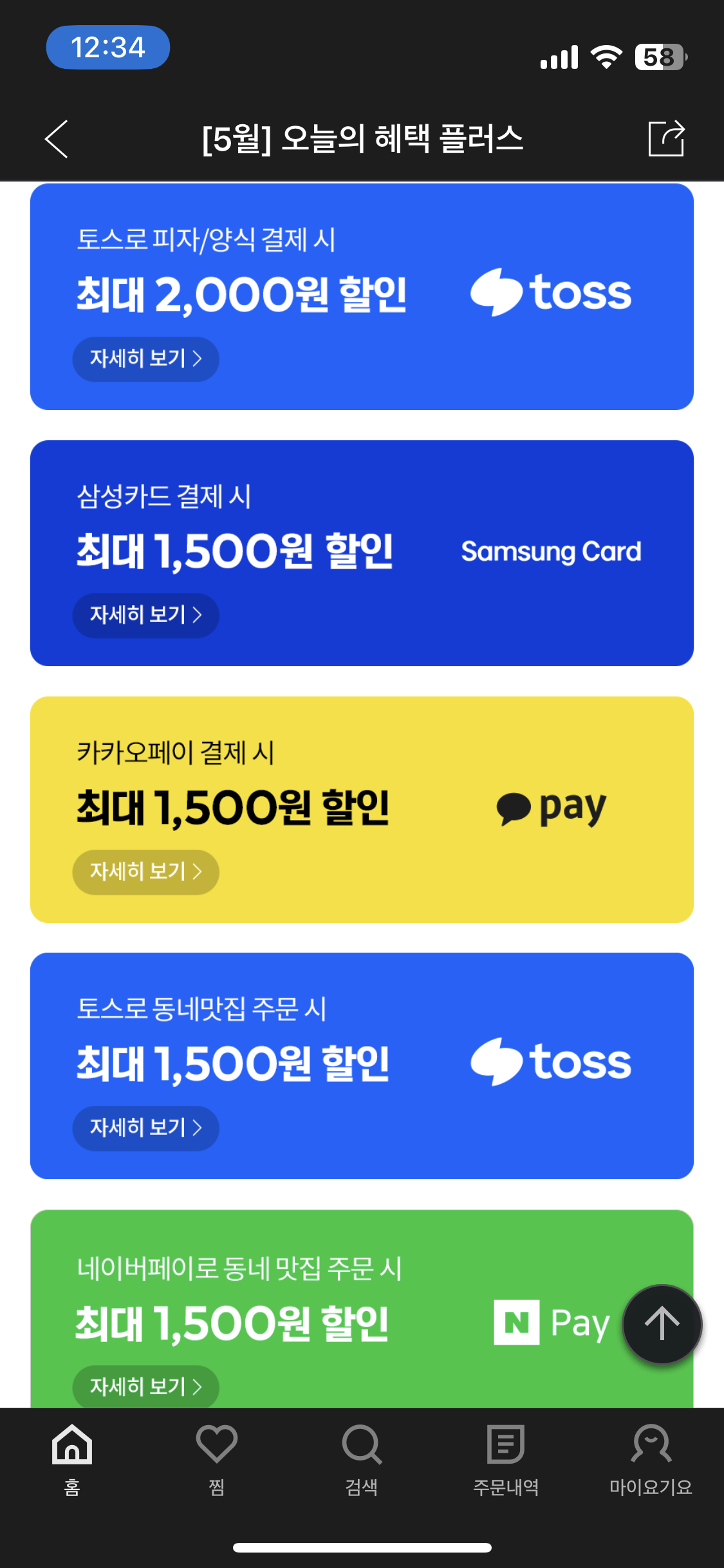 카드 할인들이 있다 거의 대부분 15,000원 이상 결제시 혜택이 적용 된다.