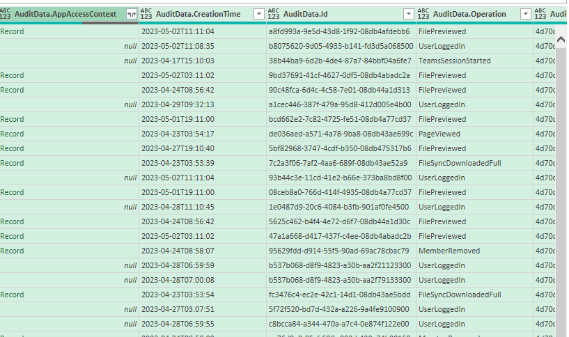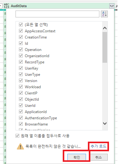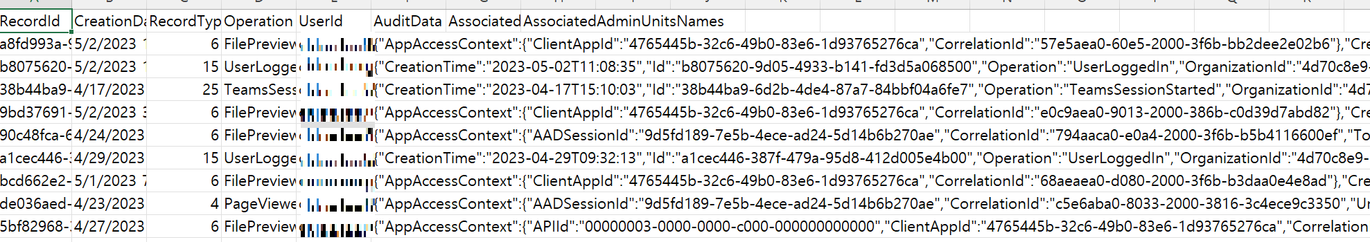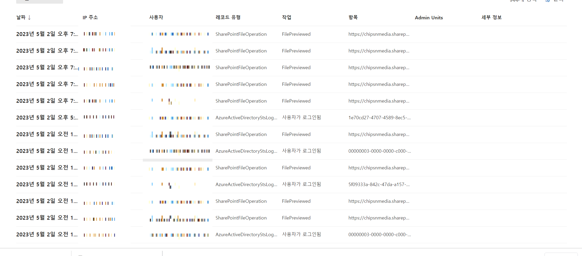O365 감사 로그를 웹상에서 보면 정상적으로 보이는데 내보내기를 할 경우 알아보기 힘들게 변경이 된다.