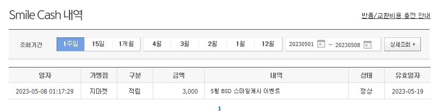 주의사항은 5월 19일까지 사용이 가능한 스마일캐시이다 사용을 안하면 사라지니 명심하자