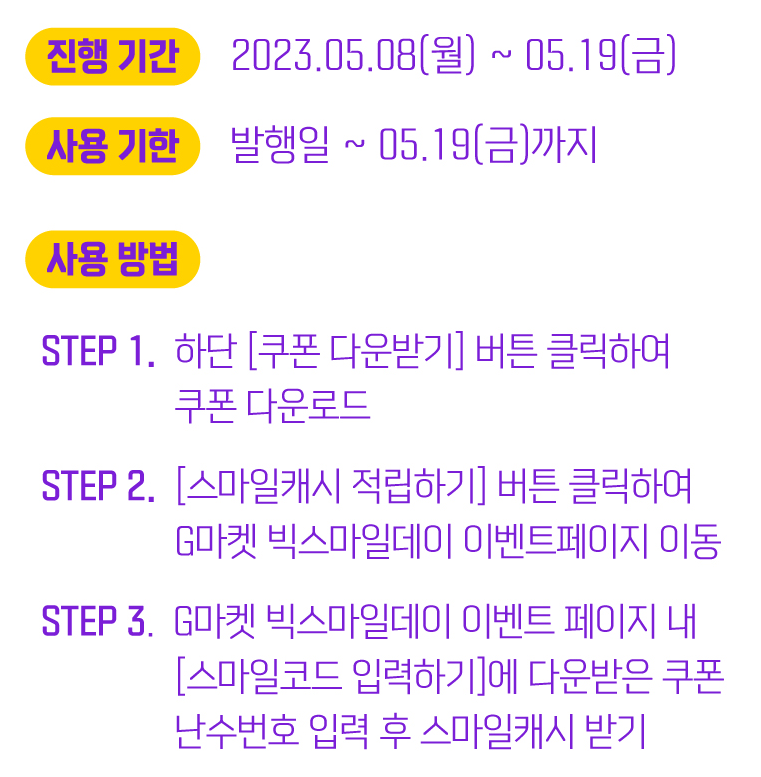 | G마켓 빅스마일데이 이벤트(이마트,신세계백화점,스타벅스 아메리카노 1+1 쿠폰 발급) (0) | 2023.05.09 |