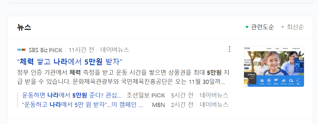 체력 쌓고 나라에서 5만원 받자 라는 기사가 떴다.