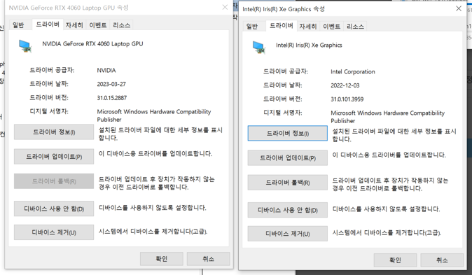 내장 그래픽카드와 외장 그래픽카드 최신 버전으로 업그레이드 하면 해결 된다.