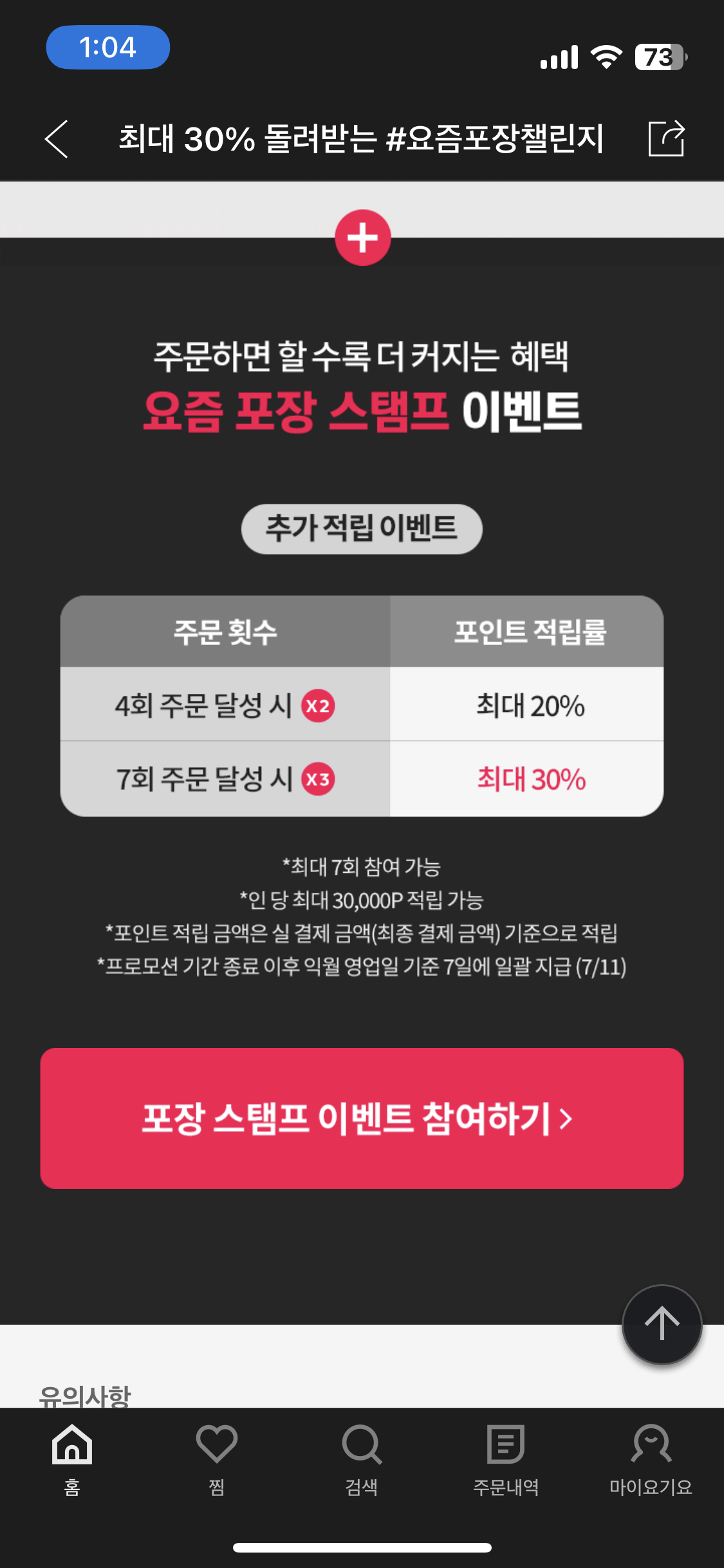 포장 횟수에 따라서 최대 30프로까지 적립이 가능하다.
