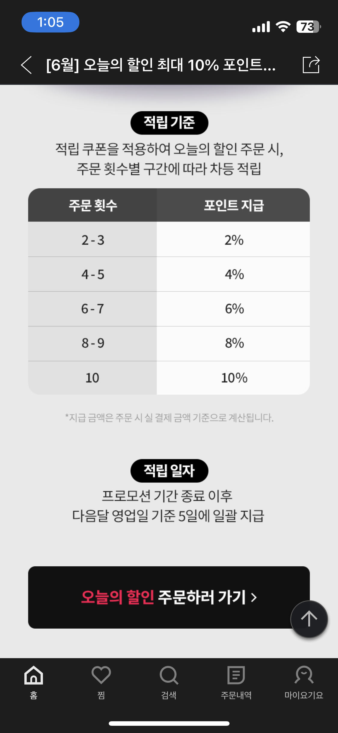 주문배달시 주문 횟수에 따라 최대 10프로까지 적립을 해준다.