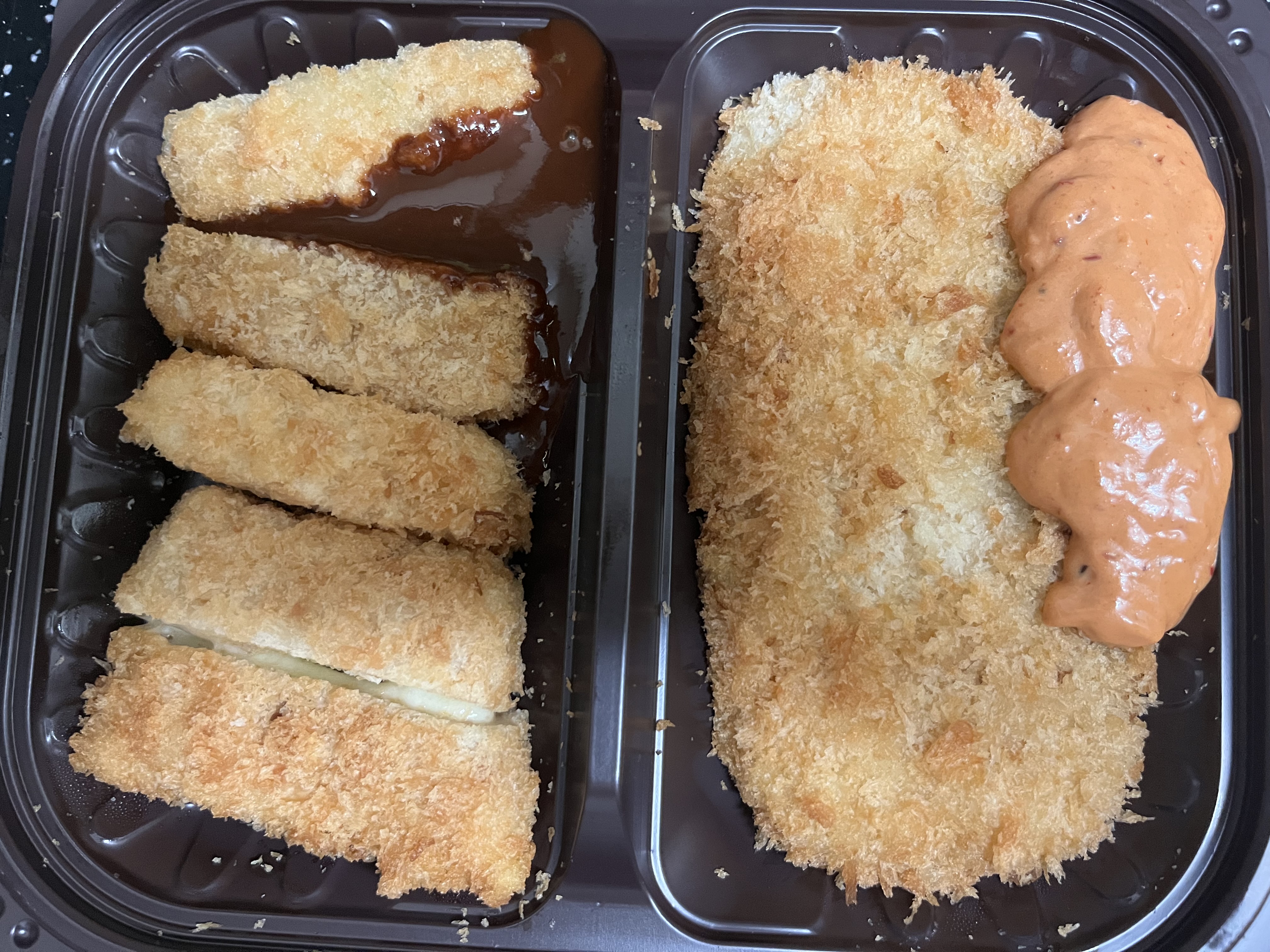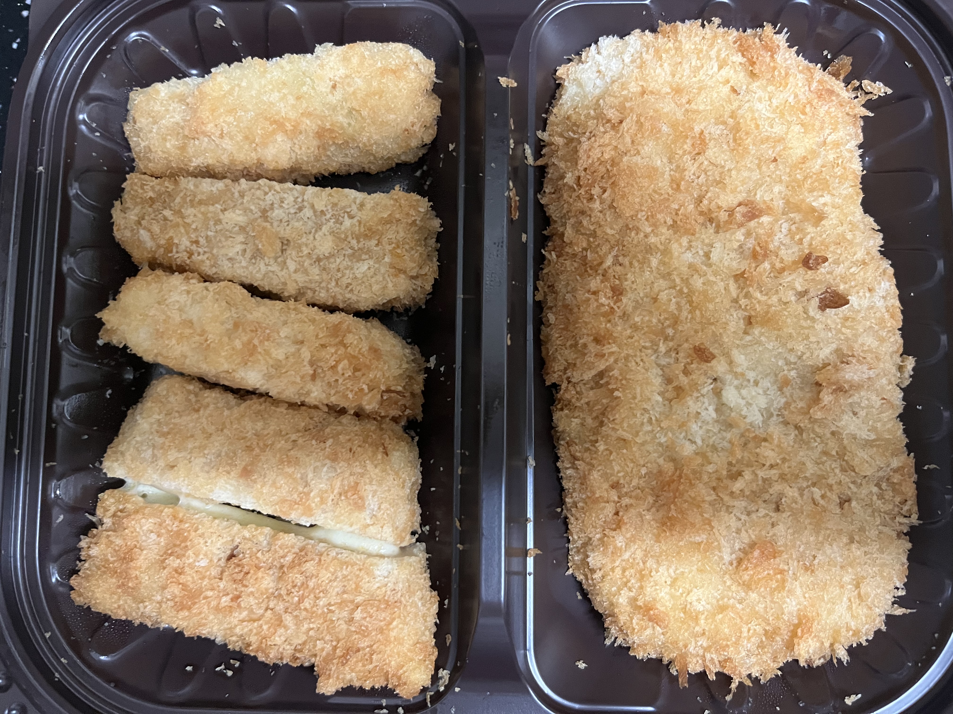 왼쪽 돈까스 동치즈, 고그마, 치킨, 매운멘치, 완두콩멘치 라는데..