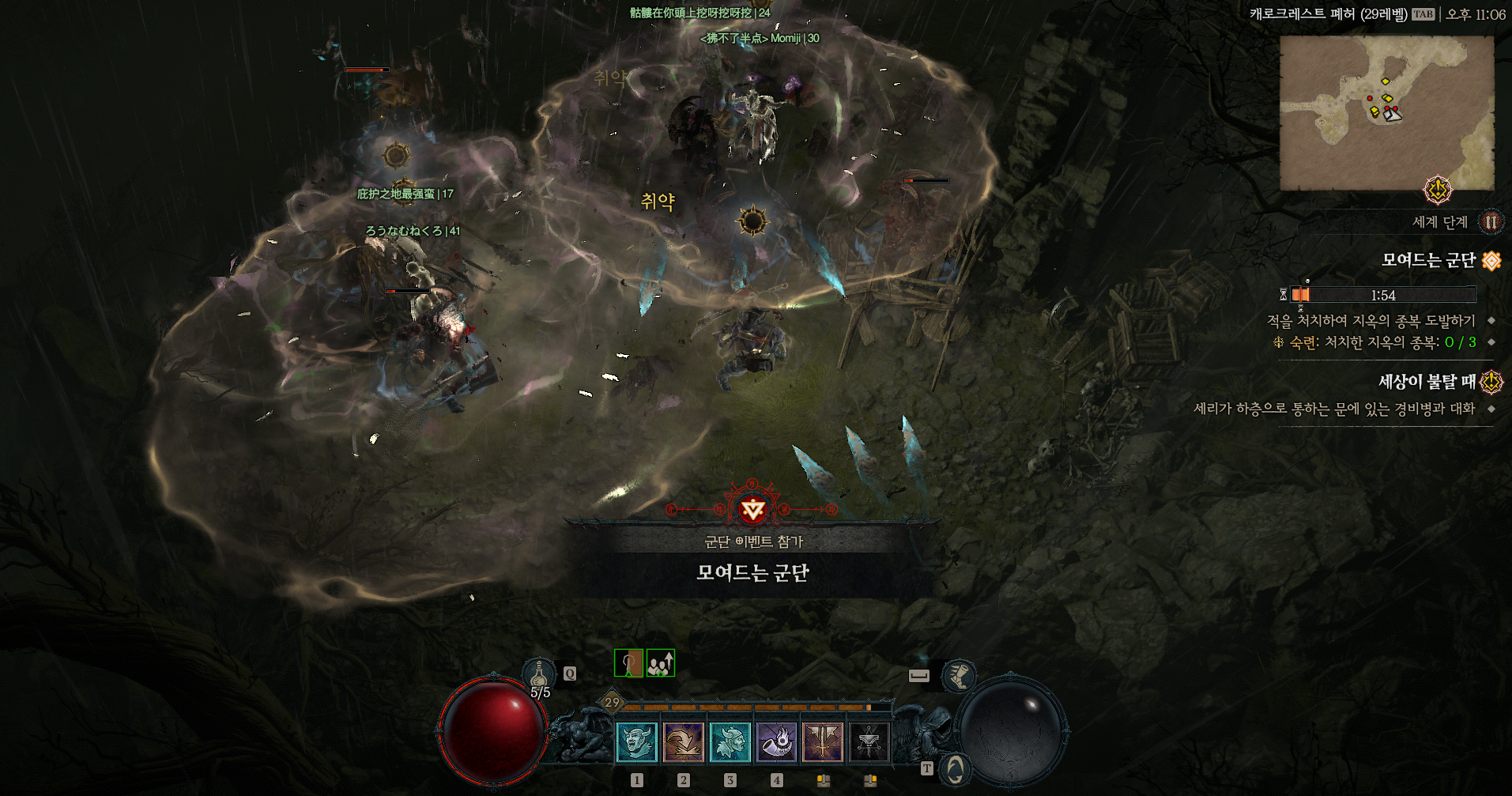 모여드는 군단 퀘가 있어서 해봤는데 재미있다 모두들 모여서 하는 퀘인듯 하다.