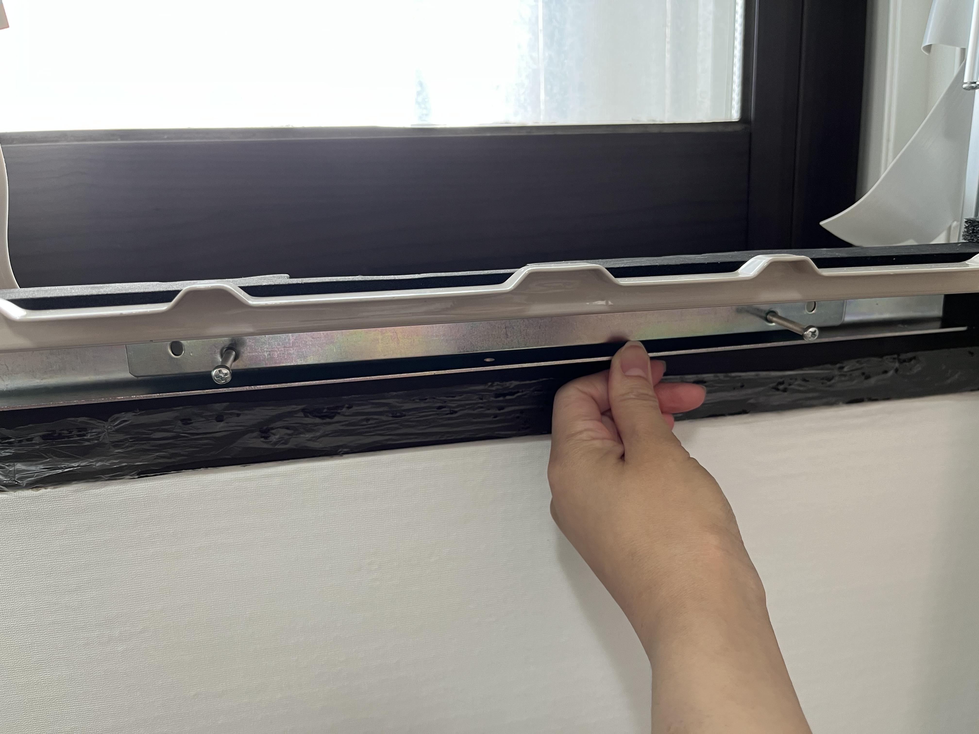 고정이 잘 됐으면 이제 오른쪽으로 쭉 밀어서 오른쪽 틈이 없게 잘 붙이자. 그리고 바람이 안들어오게 바람막이를 안쪽으로 해서 잘 넣자.