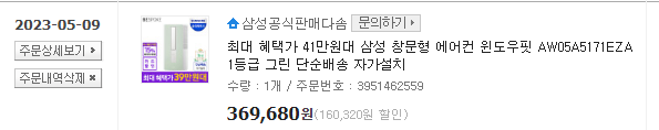 삼성 창문형 에어컨 윈도우핏 AW05A5171EZA 약 15일 사용후기 https://algo79.tistory.com/1040 2022년 쿠쿠 창문형 에어컨을 구매를 했었다. https://algo79.tistory.com/1045 하지만 지속적인 누수로 인하여 환불을 요