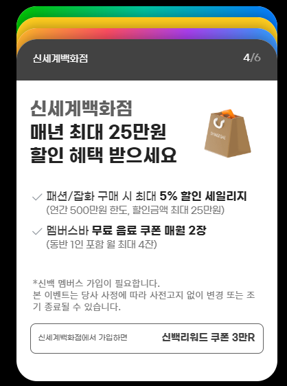 백화점에서 구매 할일이 많지 않아서.... 멤버스 바 무료 음료 쿠폰 매월2장 현대멤버스랑 비슷한듯 하다.