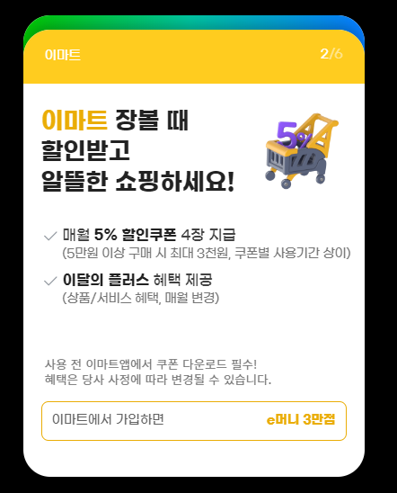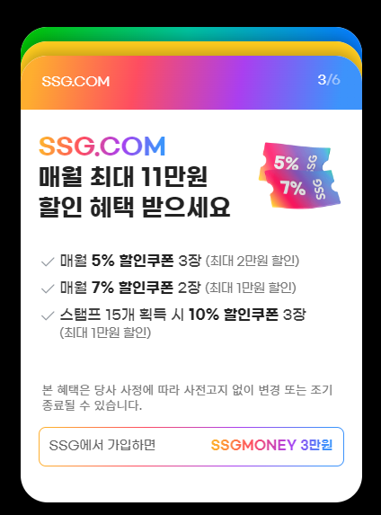 12%, 10%, 1천원 할인 쿠폰 유의사항 매월 1일 내 쿠폰함에서 확인 가능하며, 신규가입 시 즉시 지급됩니다.쿠폰은 아래 조건에서 적용 가능합니다.12% 할인쿠폰 : 1만5천원이상 구매시 최대 3천원10%