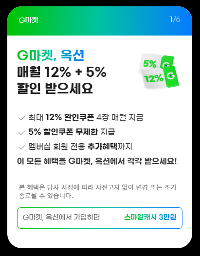 저번에 G마켓 이벤트 관련 내용을 올렸는데 어떻게 변경된지 알아보자. https://help.gmarket.co.kr/Tcs/NoticeCore/NoticeDetail?Kind=&SeqNo=29922 ##content ##content help.gmarket.co.kr 크게 우리가 체감을 할 수 있는건 1만