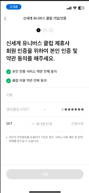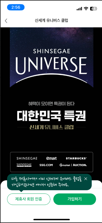 제휴사 회원 인증을 눌러보자.