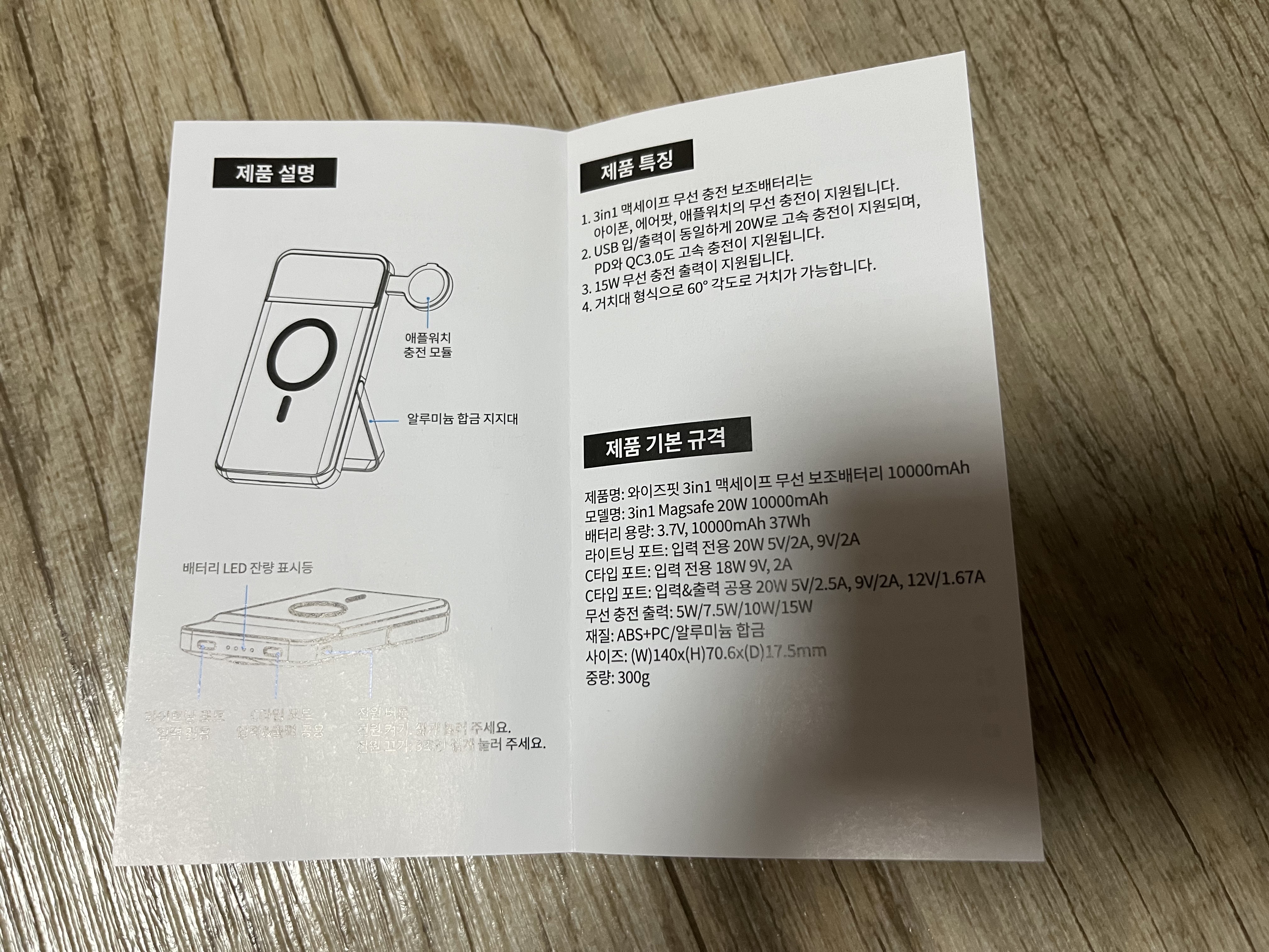 박스는 이렇게 되어 있고 고속 충전 지원에 애플워치가 가능된 1000mAh 제품이다.