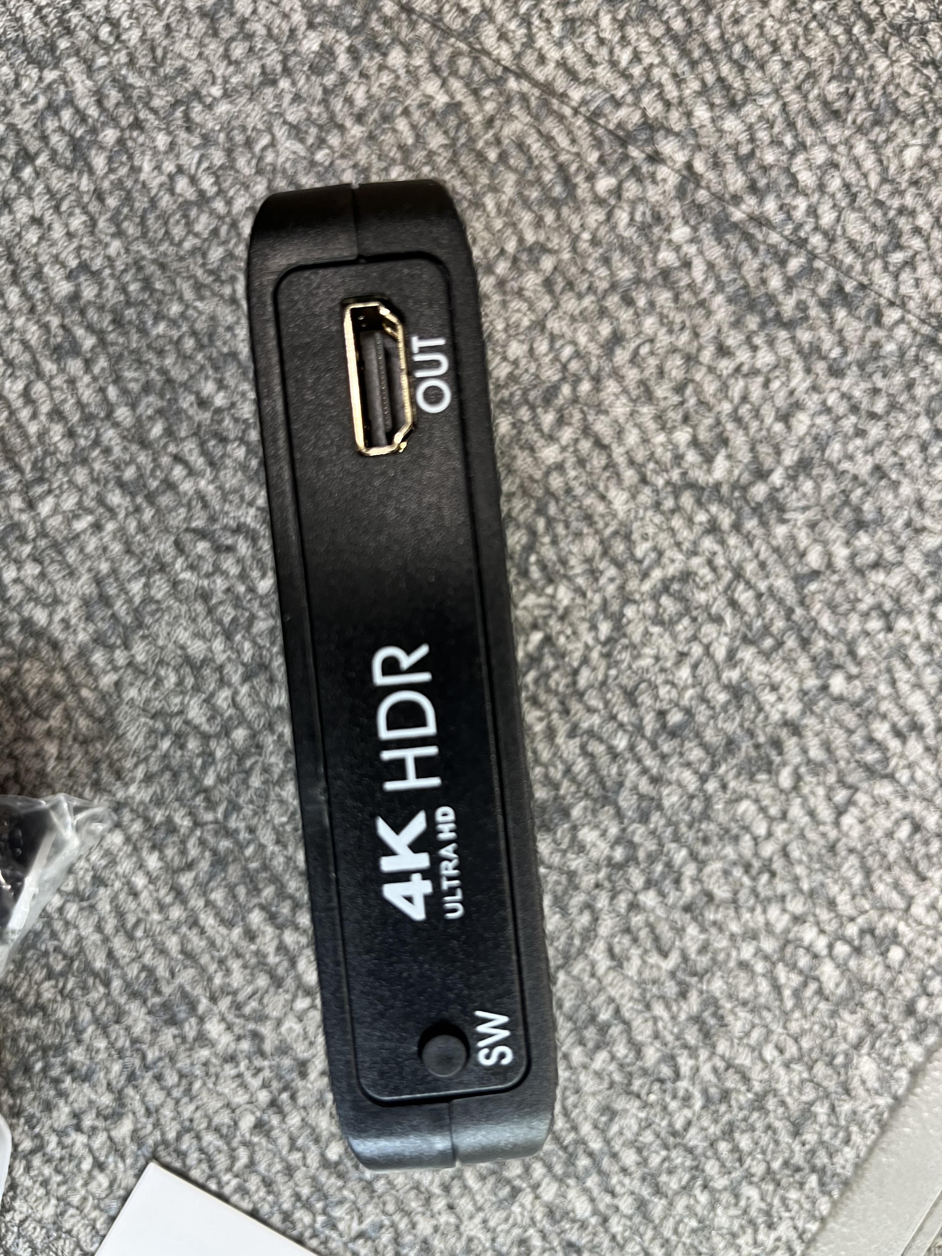 디바이스 아웃 hdmi 포트와 SW 버튼이 있다. 전환할때 씌인다.