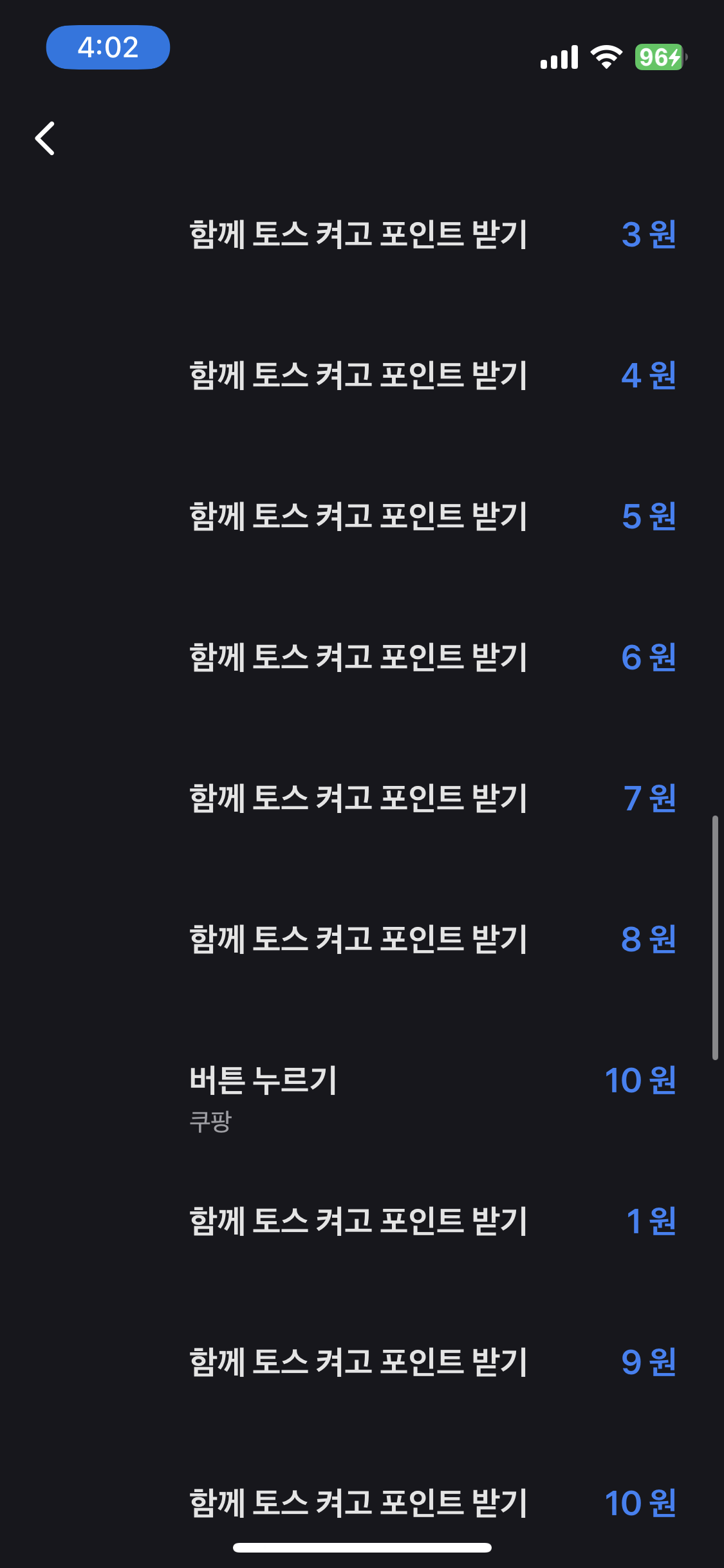 토스를 하다 보면 친구와 함께 토스 켜기를 하면 근방에 있는 친구들 한명당 10원씩 받을 수 있다.