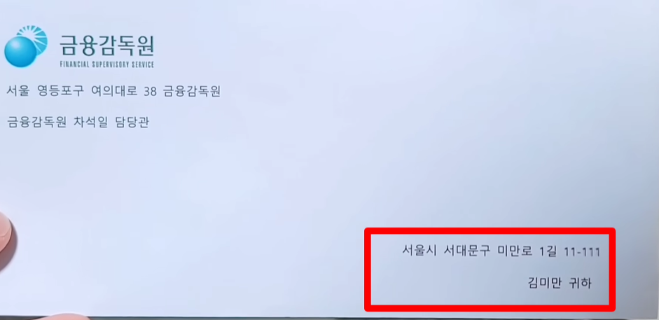 이렇게 우편으로 금융감독원이라는 우편이 온다고 한다.