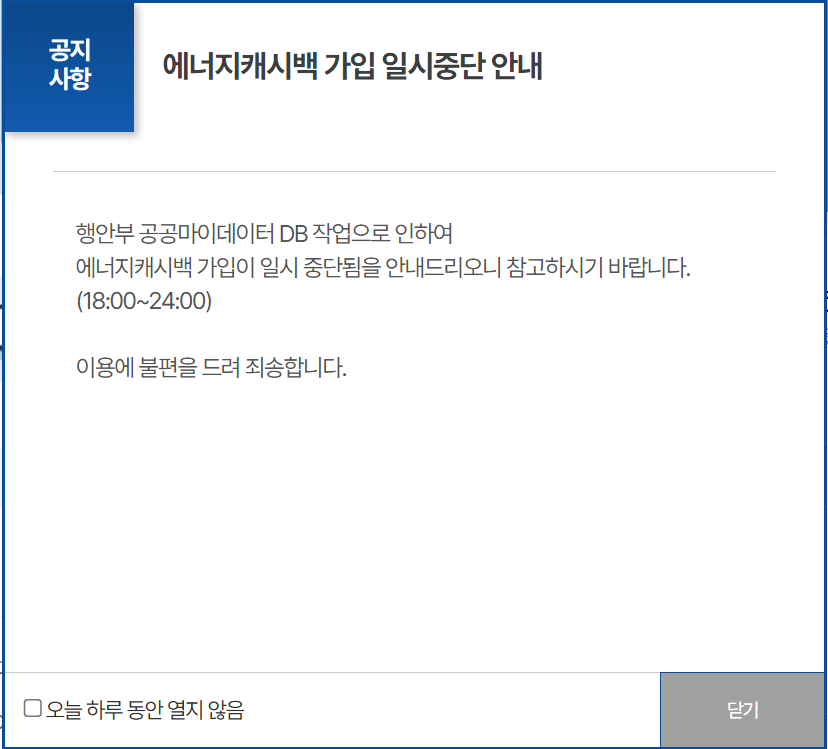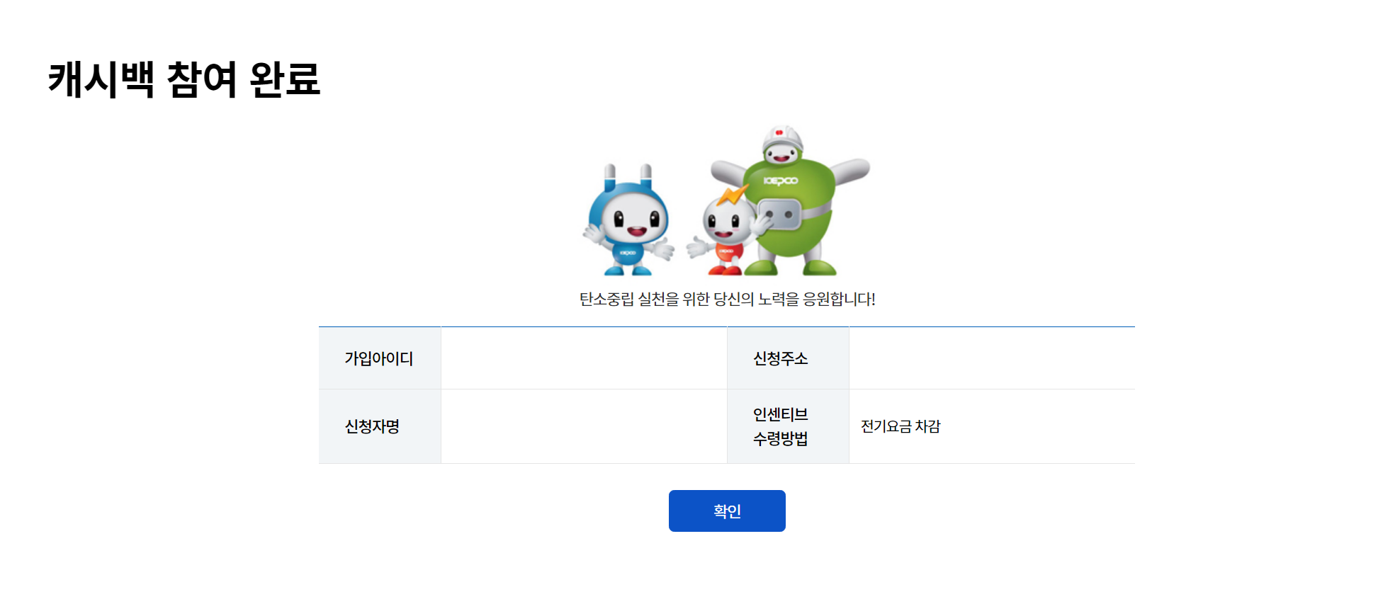 본인 인증하고 에너지캐시백 참여 확인 누르면