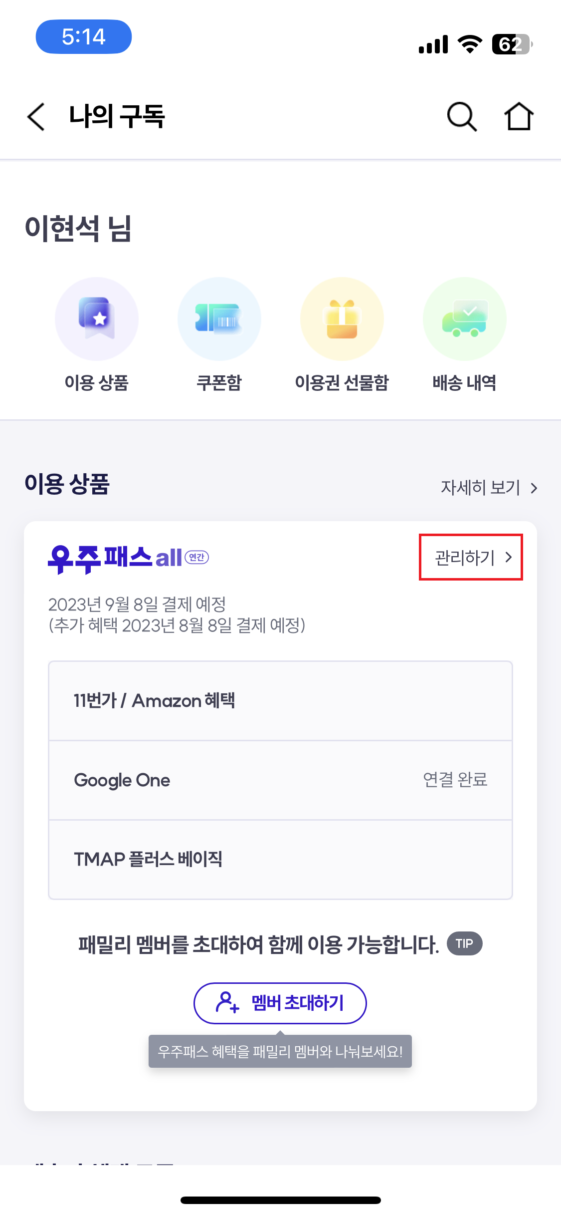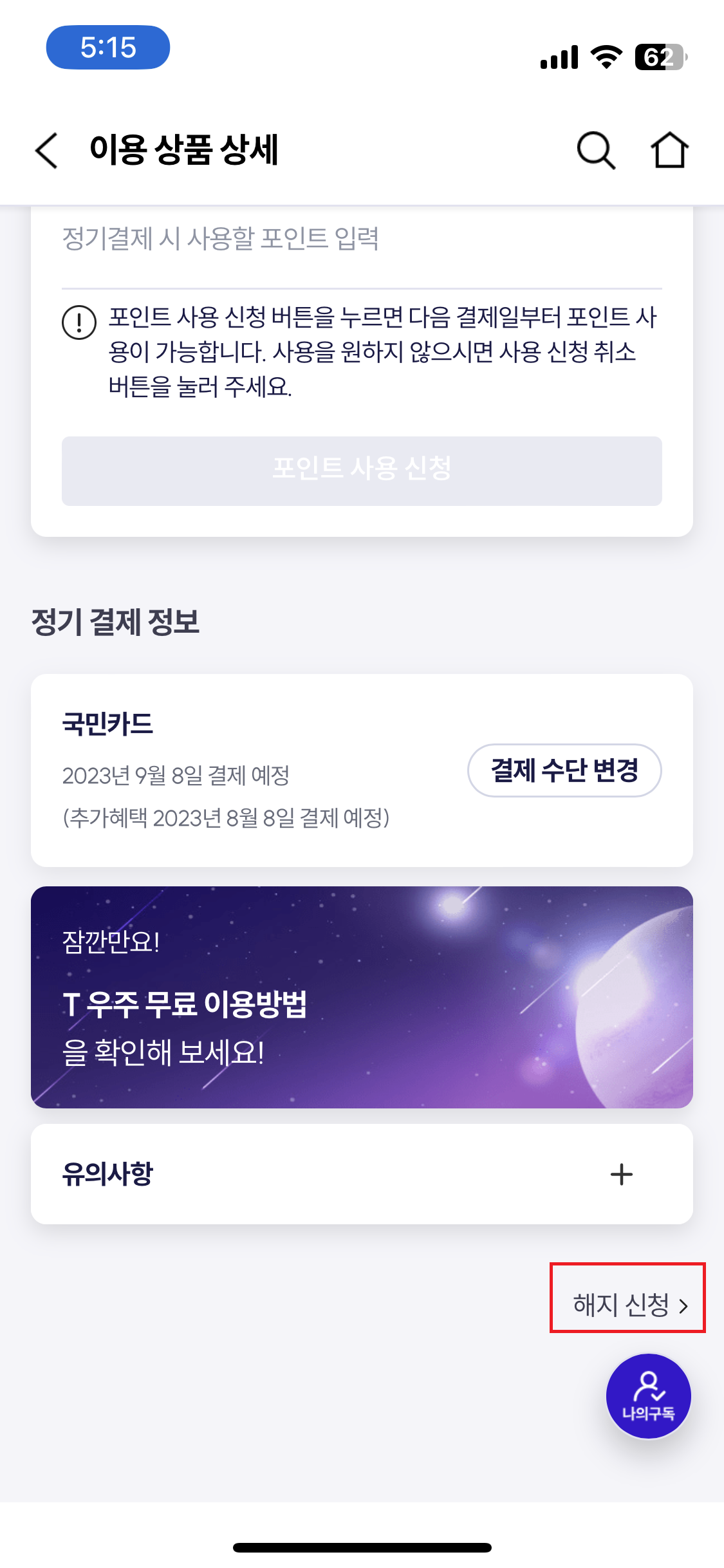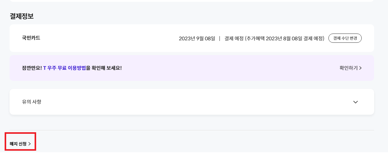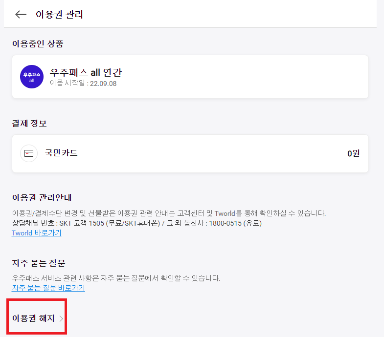 우주패스 연간회원 해지하기