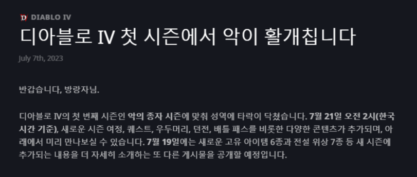 | 디아블로4 시즌1 후기 (0) | 2023.07.23 |