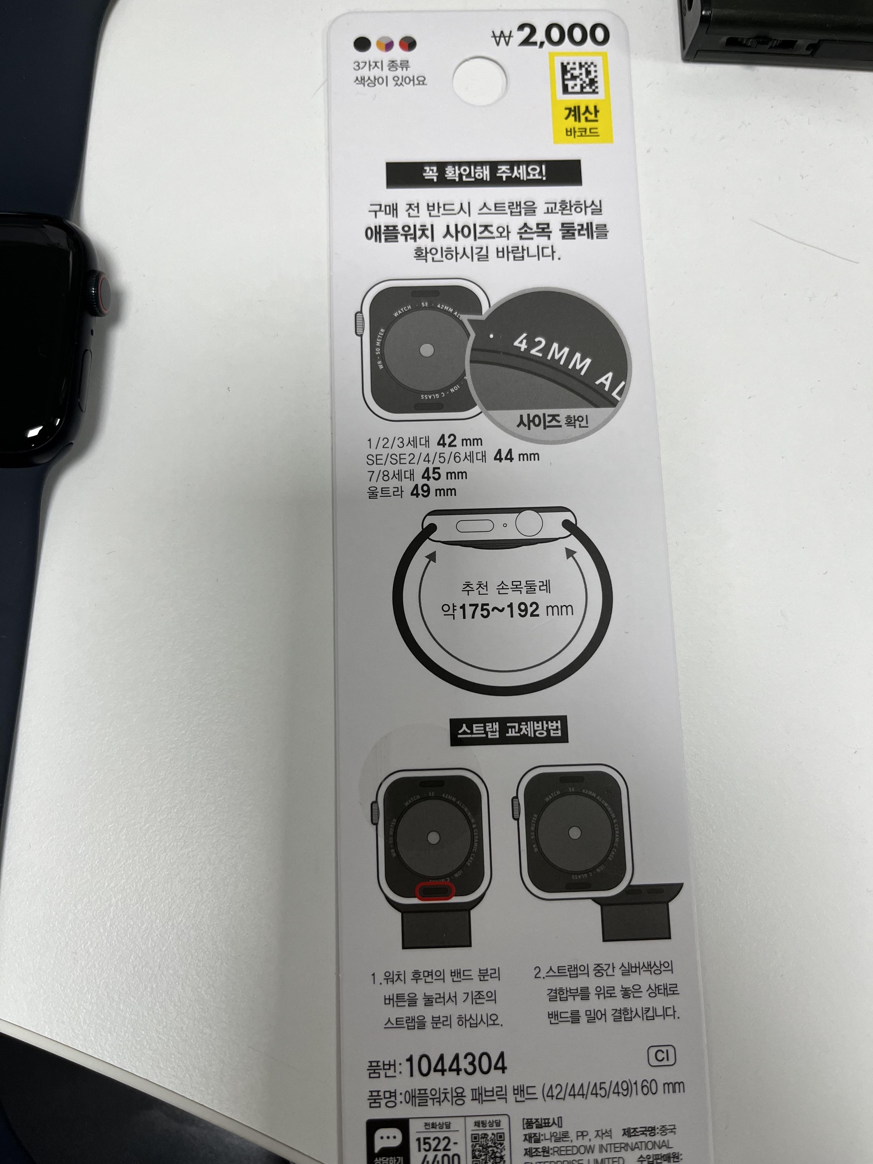 다이소 가보면 두가지 형태가 있다 작은 사이즈(38,40,41mm ) 큰사이즈 (42,44,45mm)