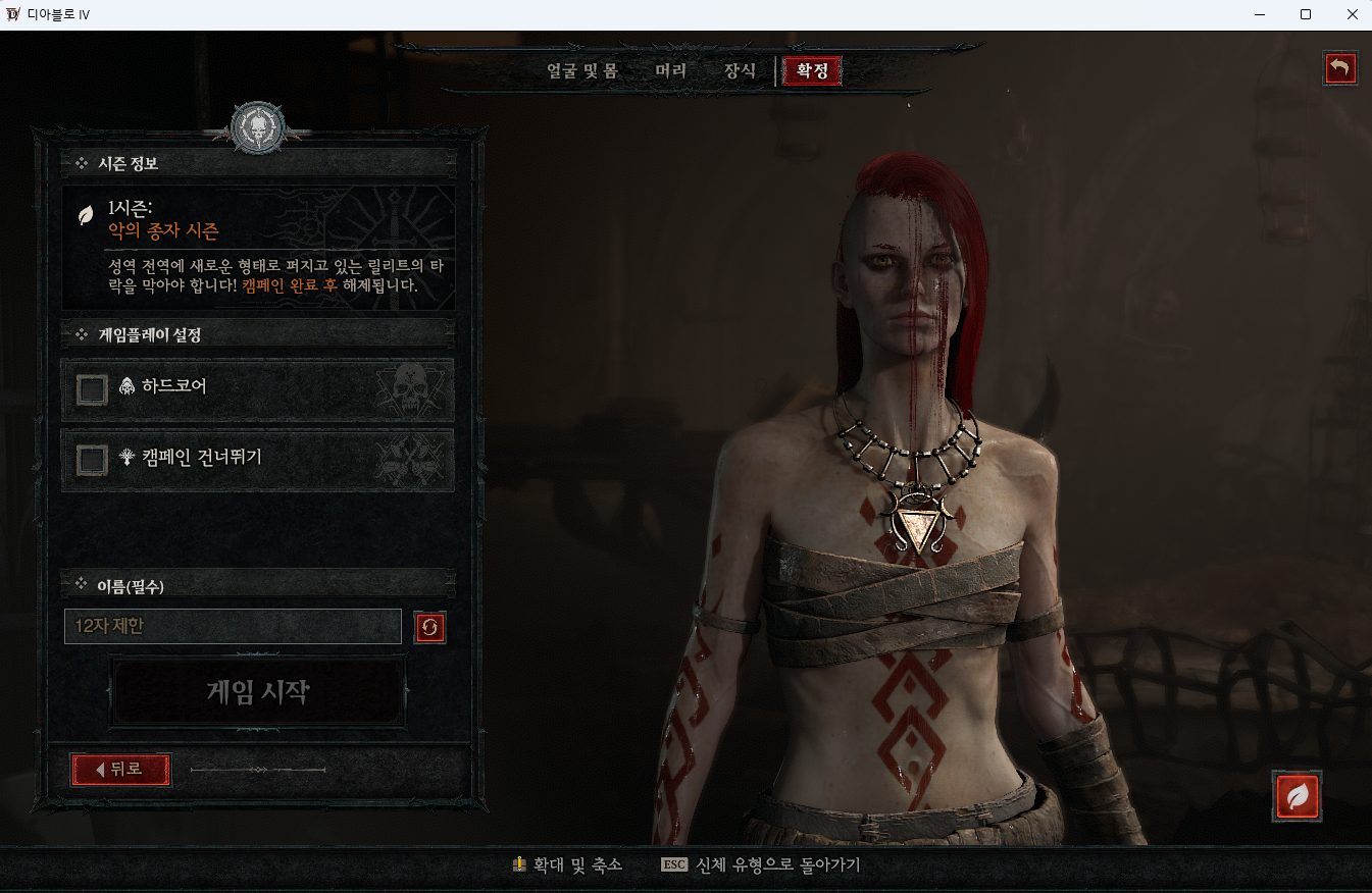 캠페인 건너뛰기 항목과 하드코어 항목 2개 선택이 가능했다. 캠페인 건너뛰기를 눌러서 계정을 생성했다.