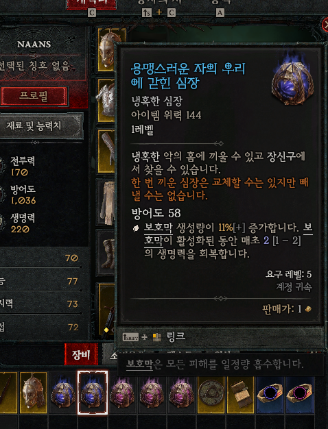 심장이라는 템이 나온다 디아3에 있는것과 비슷하다.