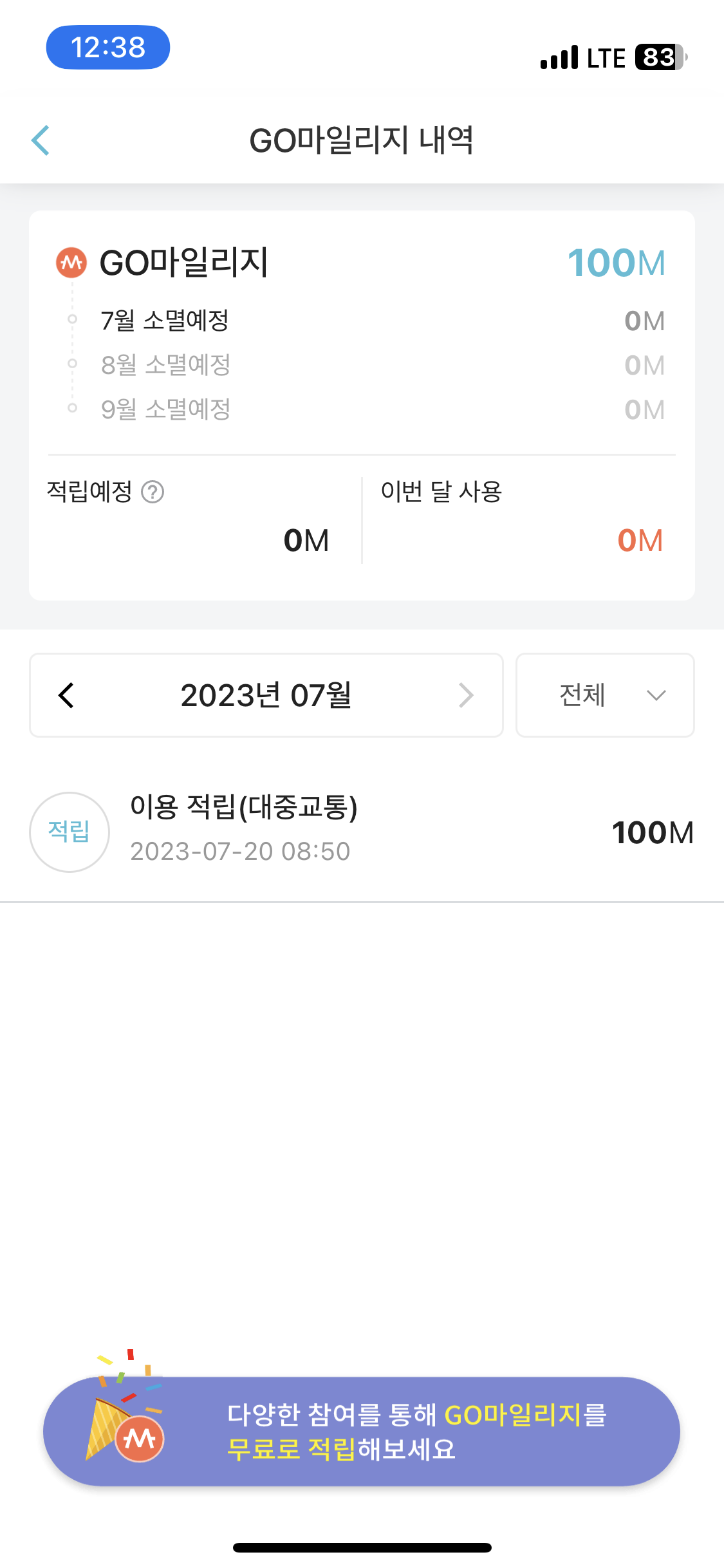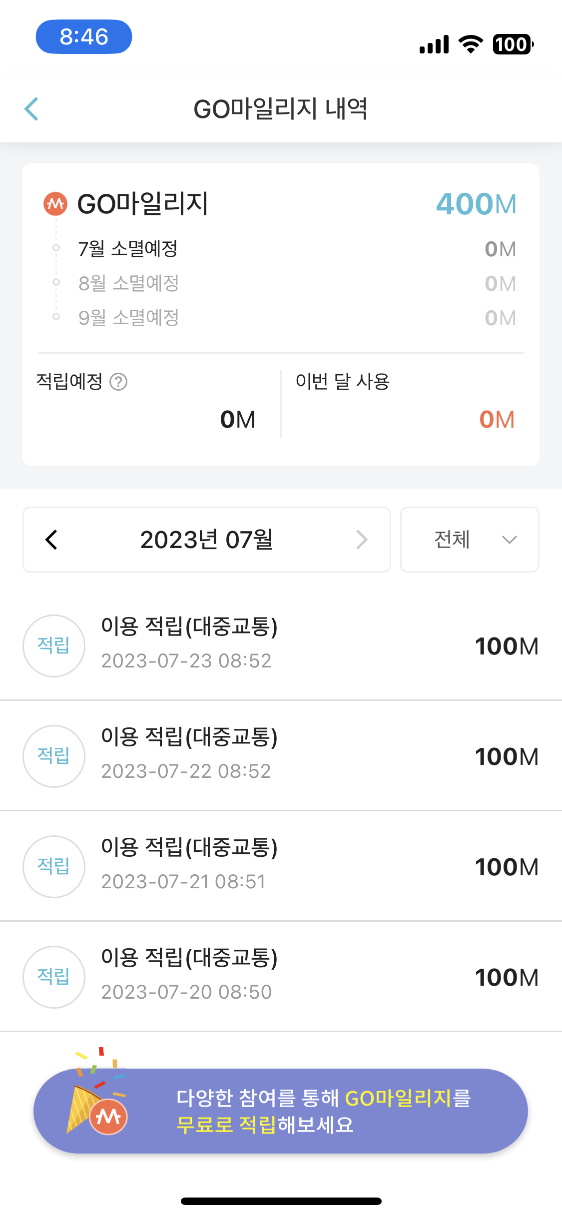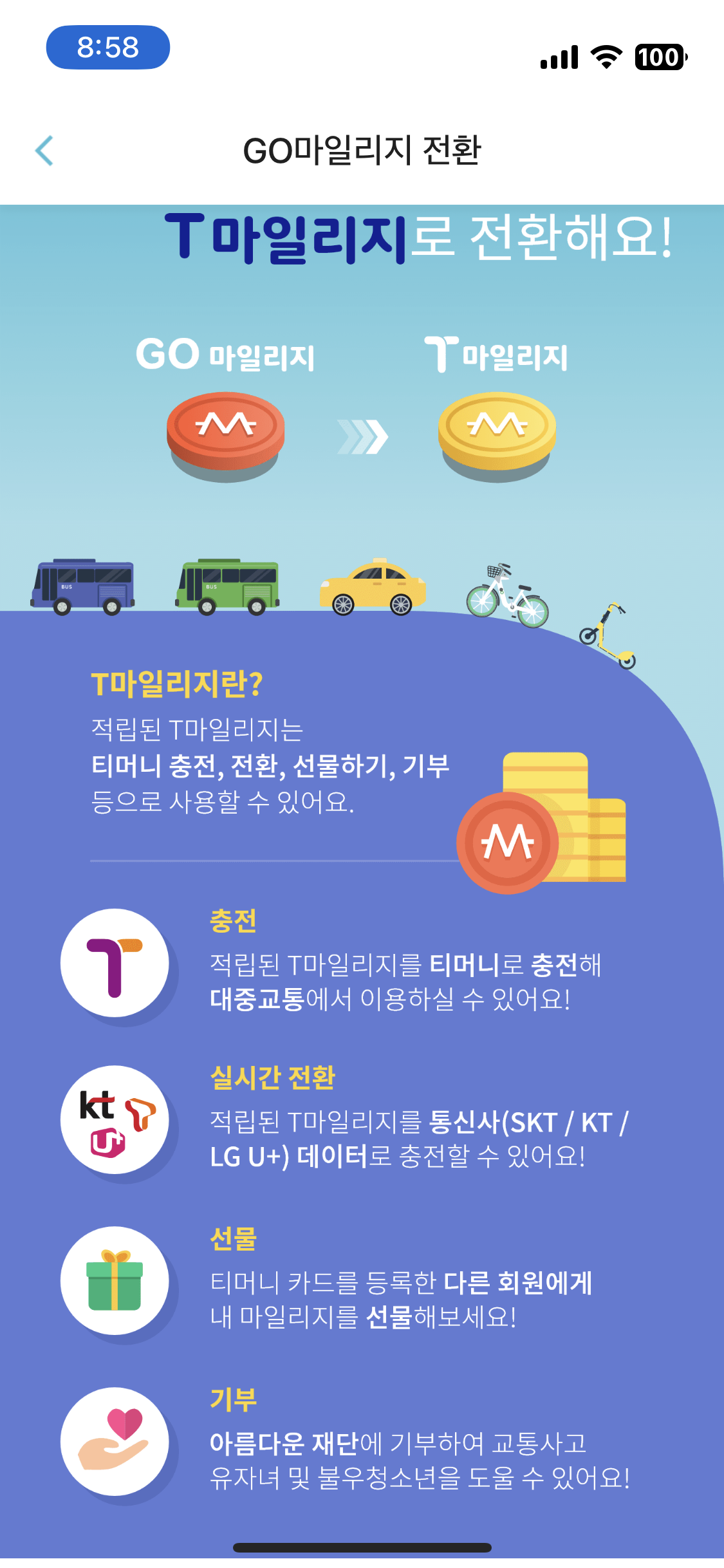 그냥 일반적인 출퇴근용으로 하면 하루 100점밖에 적립을 못받는다. 뭐 그래도 이게 어딘가 싶다 최초 한번만 등록하면 주기적으로 들어오니