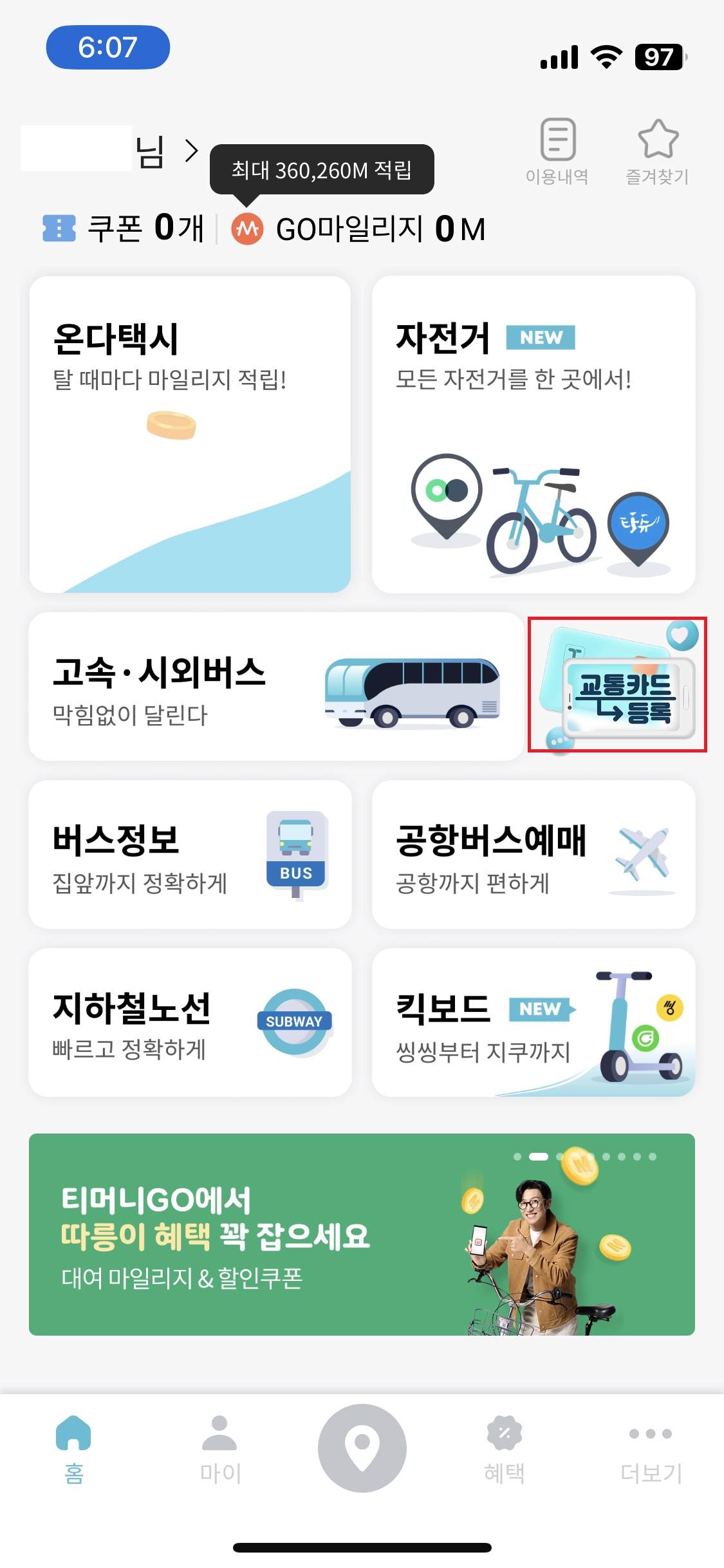 티머니GO 가입할때 추천 코드를 입력을 하면 다양한 혜택을 받을 수 있다. 추천 코드 5136025