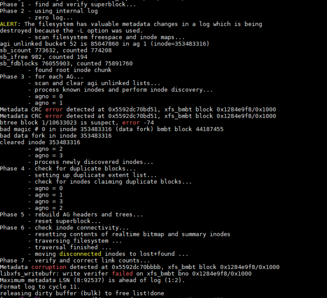 mount 하는데 위와 같이 에러가 발생을 한다면 해당 디스크 영영이 문제가 있어서 그렇다.