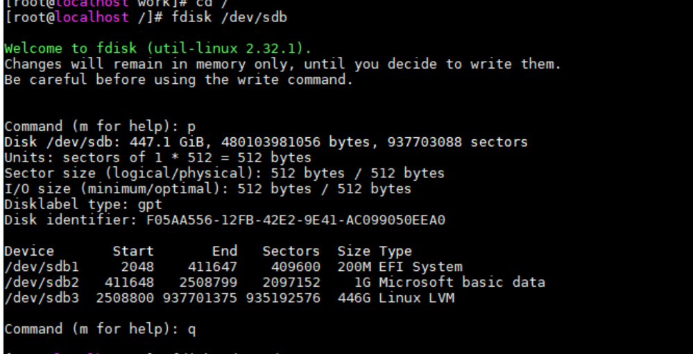 mount /dev/sdb work/mount: /work: unknown filesystem type 'LVM2_member'.