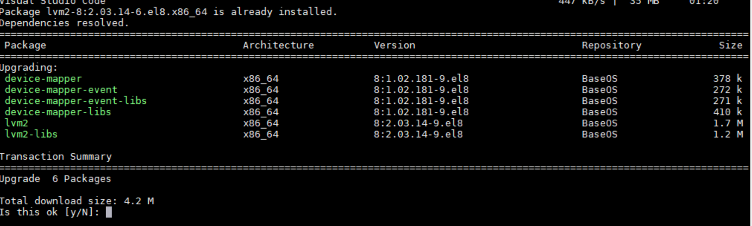 Linux LVM 으로 되어 있다. 패키지가 설치가 안되서 인식이 안되는것이다. 패키지를 설치 해주자.
