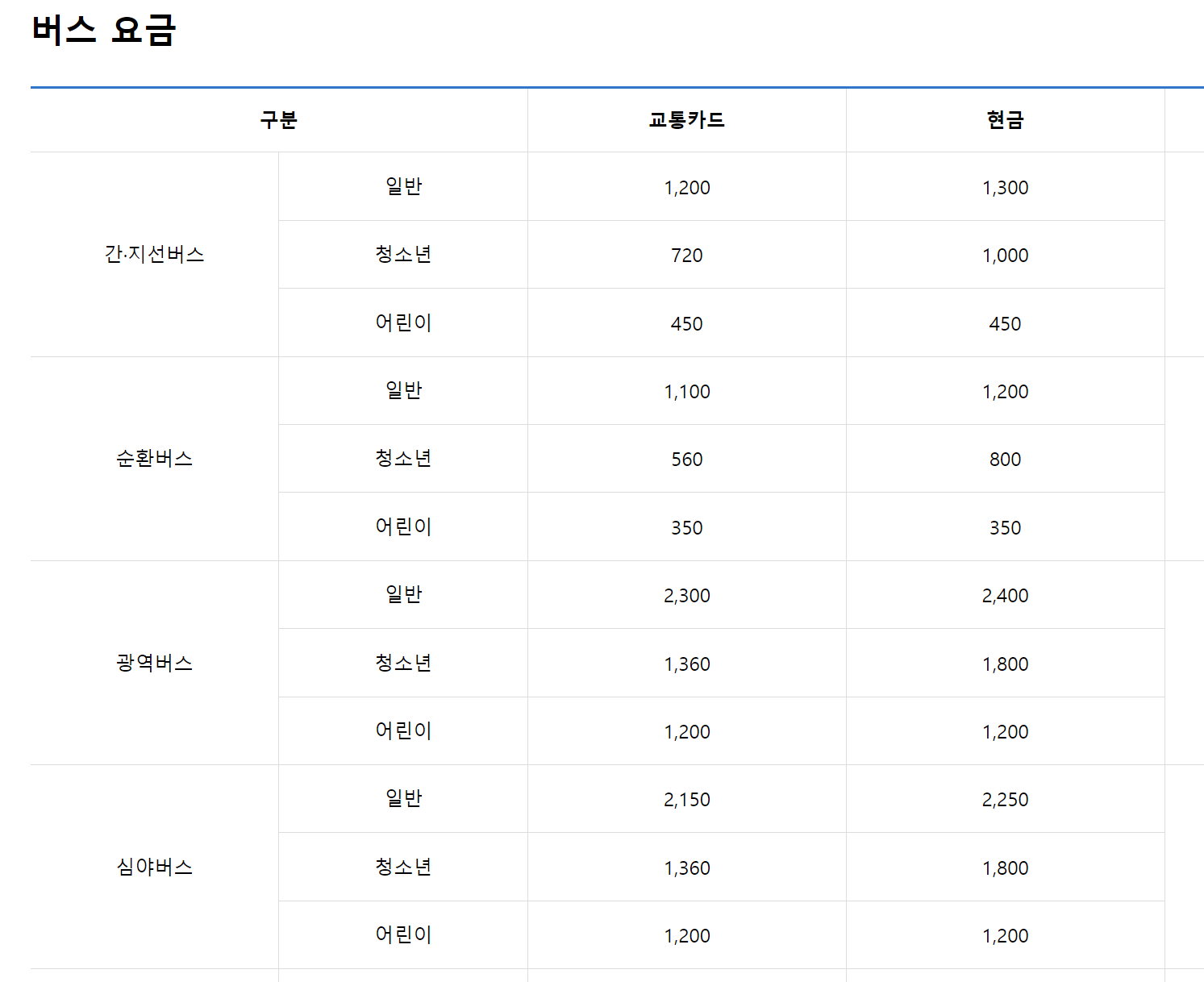 즉 카드 기준으로 간,지선버스는 300원, 순환버스도 300원, 광역버스는 700원, 심야버스는 350원이 오르는 샘이다.